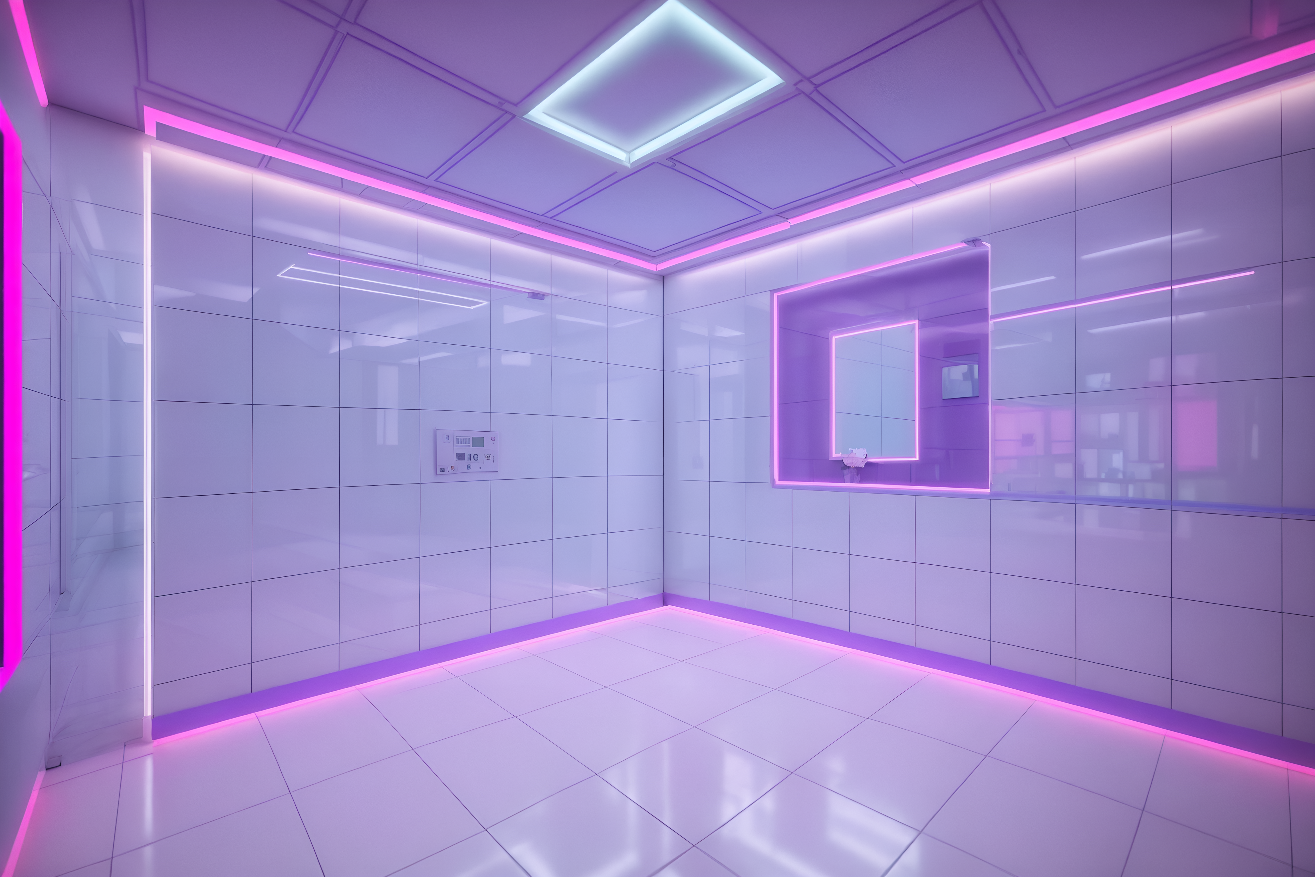 photo from pinterest of vaporwave-style interior designed (exhibition space interior) . with purple lights and white square bathroom tiles and neon glow and white square bathroom tiles and baby blue and white square bathroom tiles and bright pink and washed out colors. . cinematic photo, highly detailed, cinematic lighting, ultra-detailed, ultrarealistic, photorealism, 8k. trending on pinterest. vaporwave interior design style. masterpiece, cinematic light, ultrarealistic+, photorealistic+, 8k, raw photo, realistic, sharp focus on eyes, (symmetrical eyes), (intact eyes), hyperrealistic, highest quality, best quality, , highly detailed, masterpiece, best quality, extremely detailed 8k wallpaper, masterpiece, best quality, ultra-detailed, best shadow, detailed background, detailed face, detailed eyes, high contrast, best illumination, detailed face, dulux, caustic, dynamic angle, detailed glow. dramatic lighting. highly detailed, insanely detailed hair, symmetrical, intricate details, professionally retouched, 8k high definition. strong bokeh. award winning photo.