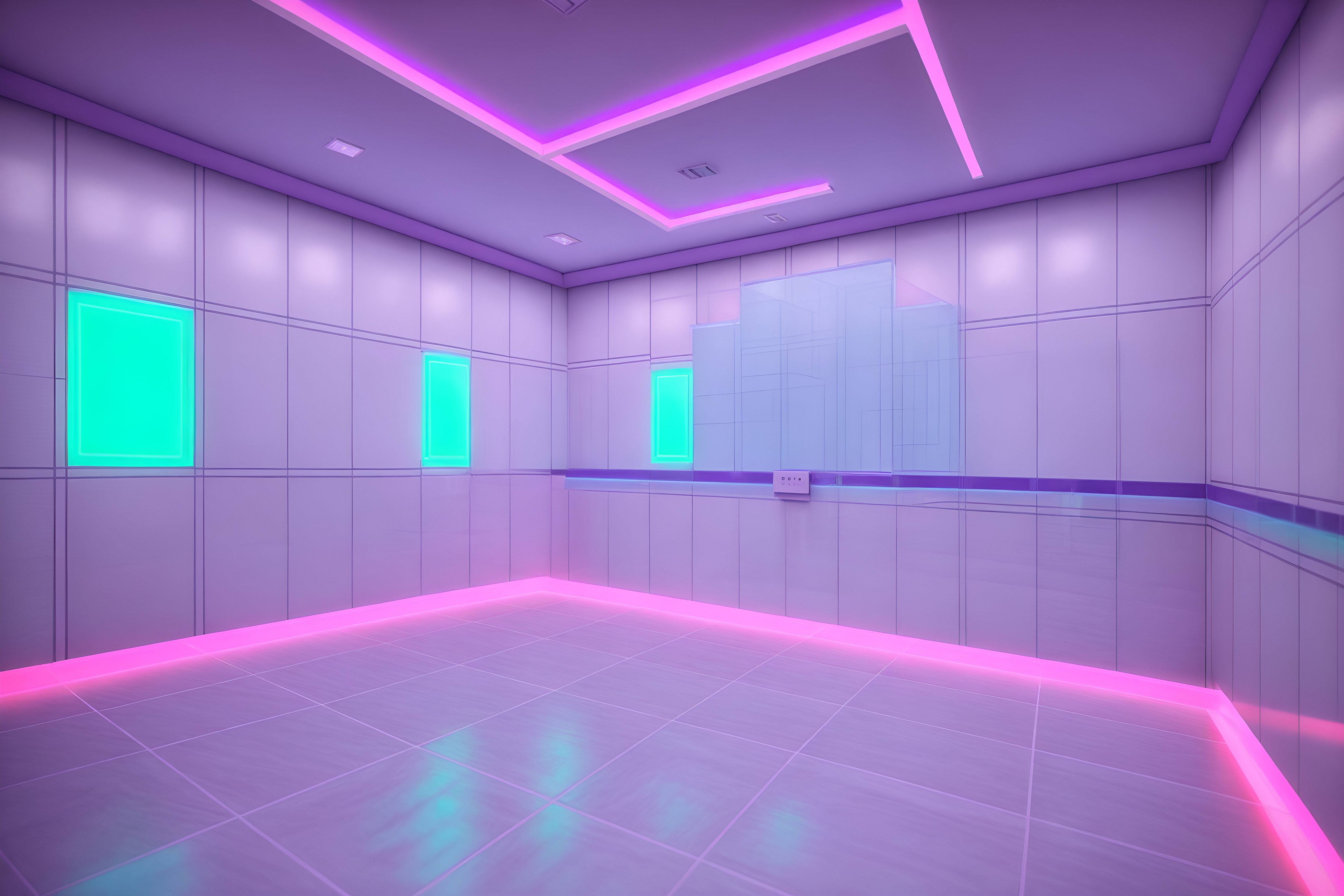 photo from pinterest of vaporwave-style interior designed (exhibition space interior) . with purple lights and white square bathroom tiles and neon glow and white square bathroom tiles and baby blue and white square bathroom tiles and bright pink and washed out colors. . cinematic photo, highly detailed, cinematic lighting, ultra-detailed, ultrarealistic, photorealism, 8k. trending on pinterest. vaporwave interior design style. masterpiece, cinematic light, ultrarealistic+, photorealistic+, 8k, raw photo, realistic, sharp focus on eyes, (symmetrical eyes), (intact eyes), hyperrealistic, highest quality, best quality, , highly detailed, masterpiece, best quality, extremely detailed 8k wallpaper, masterpiece, best quality, ultra-detailed, best shadow, detailed background, detailed face, detailed eyes, high contrast, best illumination, detailed face, dulux, caustic, dynamic angle, detailed glow. dramatic lighting. highly detailed, insanely detailed hair, symmetrical, intricate details, professionally retouched, 8k high definition. strong bokeh. award winning photo.