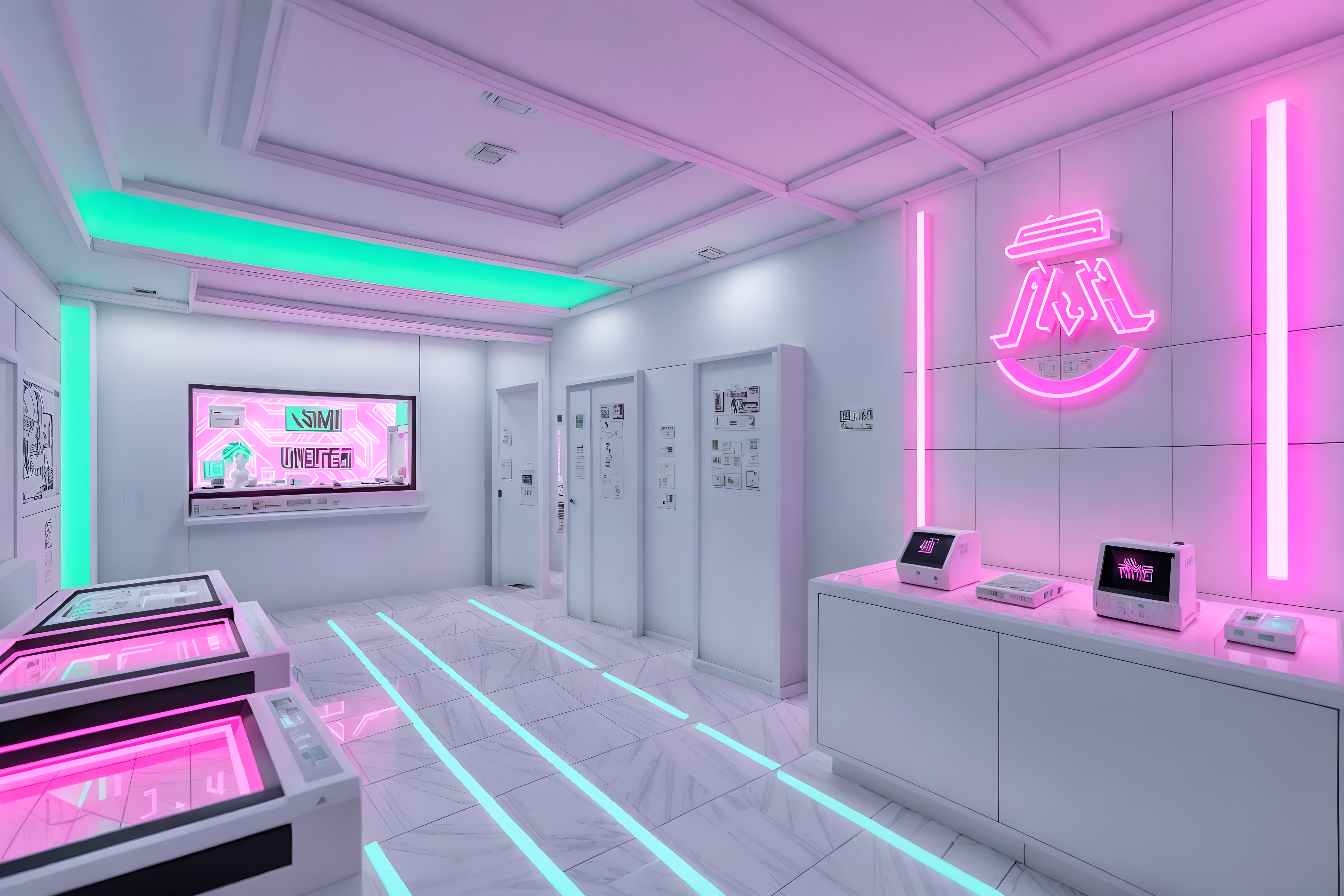 photo from pinterest of vaporwave-style interior designed (gaming room interior) . with white square bathroom tiles and bright pink and neon glow and 1980s retail shops and palm trees and japanese letters on wall and palm trees and white roman statues, white roman sculptures, white roman columns, white roman pillars in the center of the room,. . cinematic photo, highly detailed, cinematic lighting, ultra-detailed, ultrarealistic, photorealism, 8k. trending on pinterest. vaporwave interior design style. masterpiece, cinematic light, ultrarealistic+, photorealistic+, 8k, raw photo, realistic, sharp focus on eyes, (symmetrical eyes), (intact eyes), hyperrealistic, highest quality, best quality, , highly detailed, masterpiece, best quality, extremely detailed 8k wallpaper, masterpiece, best quality, ultra-detailed, best shadow, detailed background, detailed face, detailed eyes, high contrast, best illumination, detailed face, dulux, caustic, dynamic angle, detailed glow. dramatic lighting. highly detailed, insanely detailed hair, symmetrical, intricate details, professionally retouched, 8k high definition. strong bokeh. award winning photo.