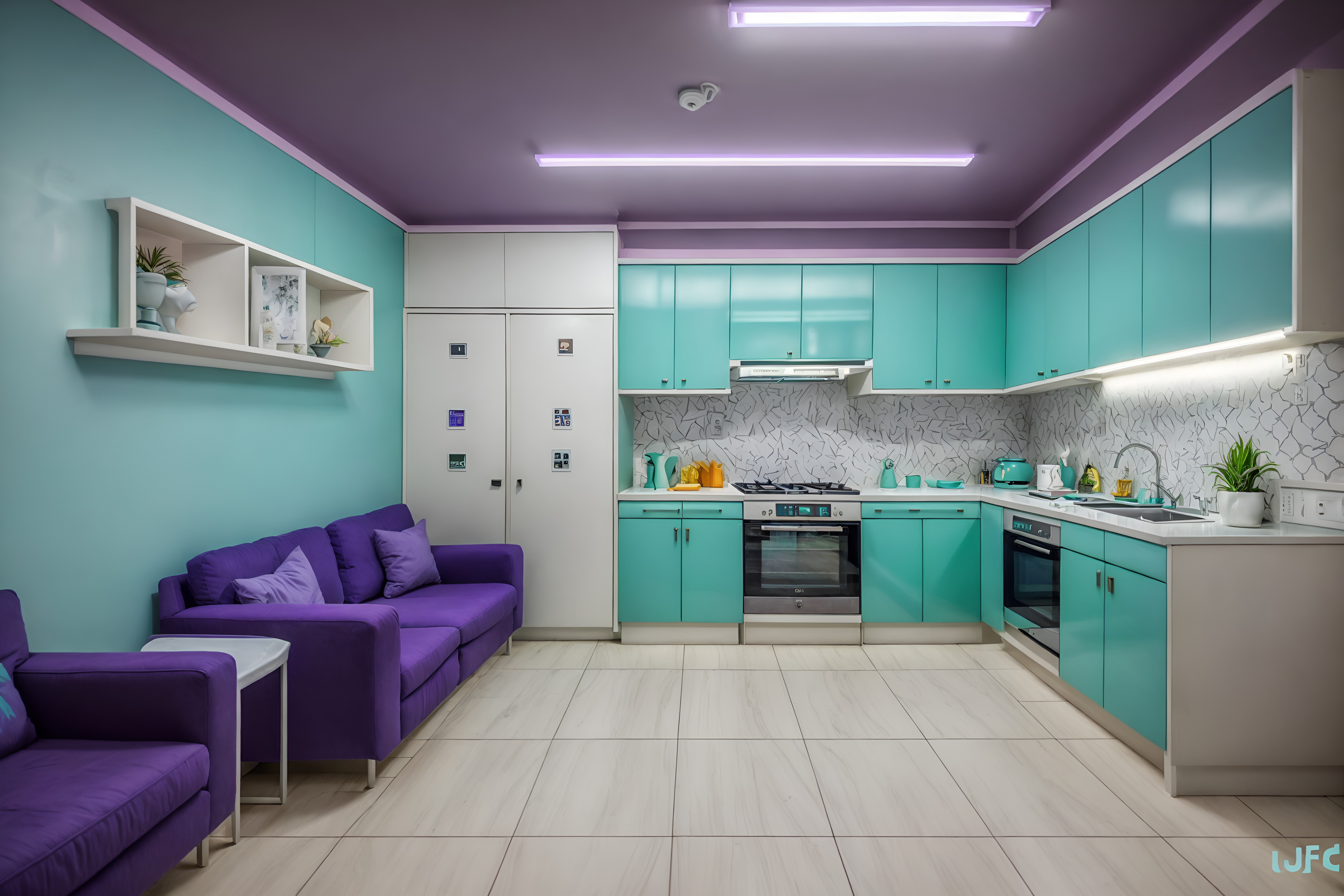 photo from pinterest of vaporwave-style interior designed (kitchen living combo interior) with sofa and furniture and electric lamps and televisions and sink and worktops and occasional tables and chairs. . with teal colors and japanese letters on wall and purple lights and washed out colors and japanese letters on wall and palm trees and palm trees and white square bathroom tiles. . cinematic photo, highly detailed, cinematic lighting, ultra-detailed, ultrarealistic, photorealism, 8k. trending on pinterest. vaporwave interior design style. masterpiece, cinematic light, ultrarealistic+, photorealistic+, 8k, raw photo, realistic, sharp focus on eyes, (symmetrical eyes), (intact eyes), hyperrealistic, highest quality, best quality, , highly detailed, masterpiece, best quality, extremely detailed 8k wallpaper, masterpiece, best quality, ultra-detailed, best shadow, detailed background, detailed face, detailed eyes, high contrast, best illumination, detailed face, dulux, caustic, dynamic angle, detailed glow. dramatic lighting. highly detailed, insanely detailed hair, symmetrical, intricate details, professionally retouched, 8k high definition. strong bokeh. award winning photo.
