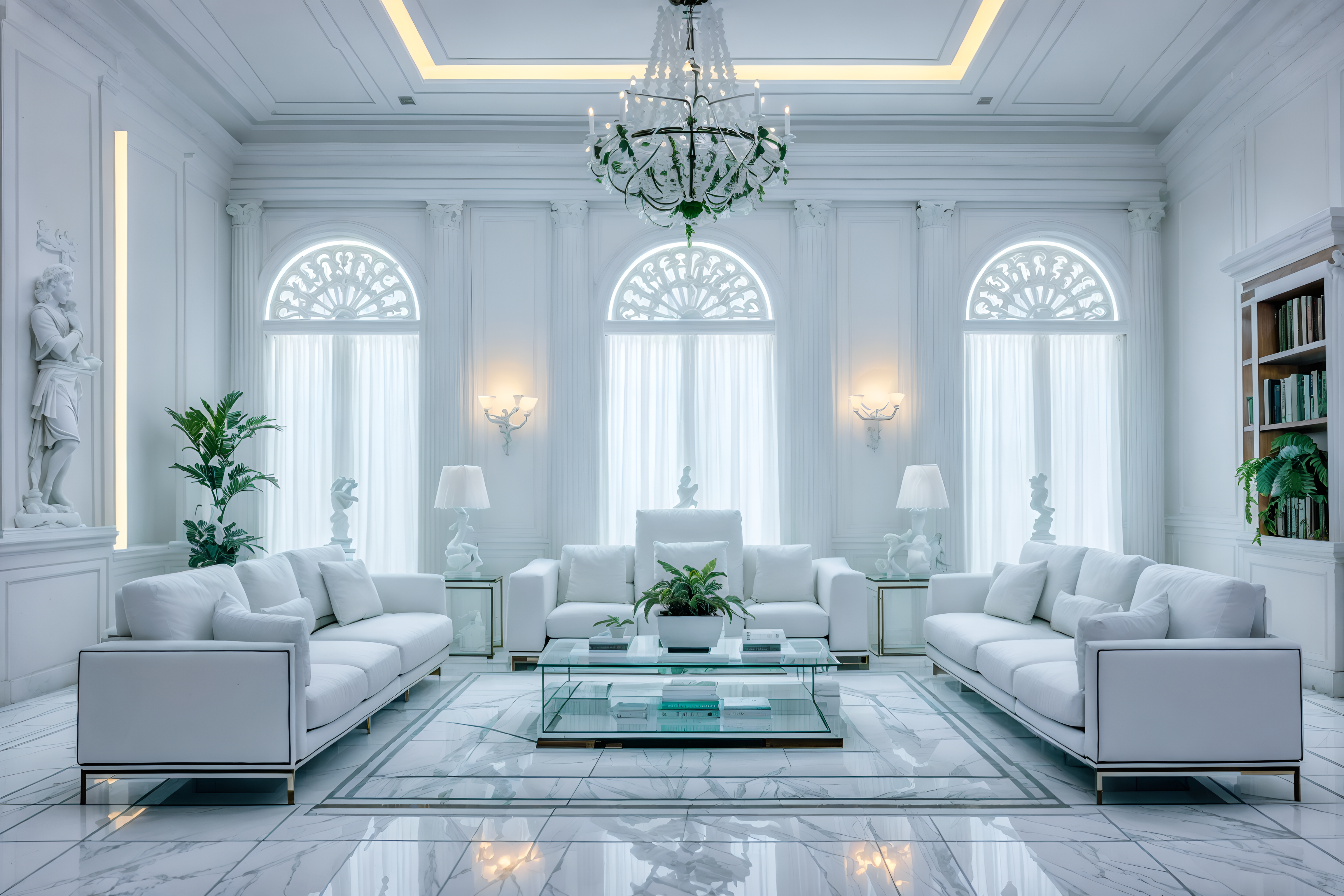 photo from pinterest of vaporwave-style interior designed (living room interior) with plant and electric lamps and bookshelves and televisions and coffee tables and sofa and furniture and chairs. . with neon glow and white square bathroom tiles and white square bathroom tiles and white roman statues, white roman sculptures, white roman columns, white roman pillars in the center of the room, and white roman statues, white roman sculptures, white roman columns, white roman pillars in the center of the room, and teal colors and palm trees and purple lights. . cinematic photo, highly detailed, cinematic lighting, ultra-detailed, ultrarealistic, photorealism, 8k. trending on pinterest. vaporwave interior design style. masterpiece, cinematic light, ultrarealistic+, photorealistic+, 8k, raw photo, realistic, sharp focus on eyes, (symmetrical eyes), (intact eyes), hyperrealistic, highest quality, best quality, , highly detailed, masterpiece, best quality, extremely detailed 8k wallpaper, masterpiece, best quality, ultra-detailed, best shadow, detailed background, detailed face, detailed eyes, high contrast, best illumination, detailed face, dulux, caustic, dynamic angle, detailed glow. dramatic lighting. highly detailed, insanely detailed hair, symmetrical, intricate details, professionally retouched, 8k high definition. strong bokeh. award winning photo.