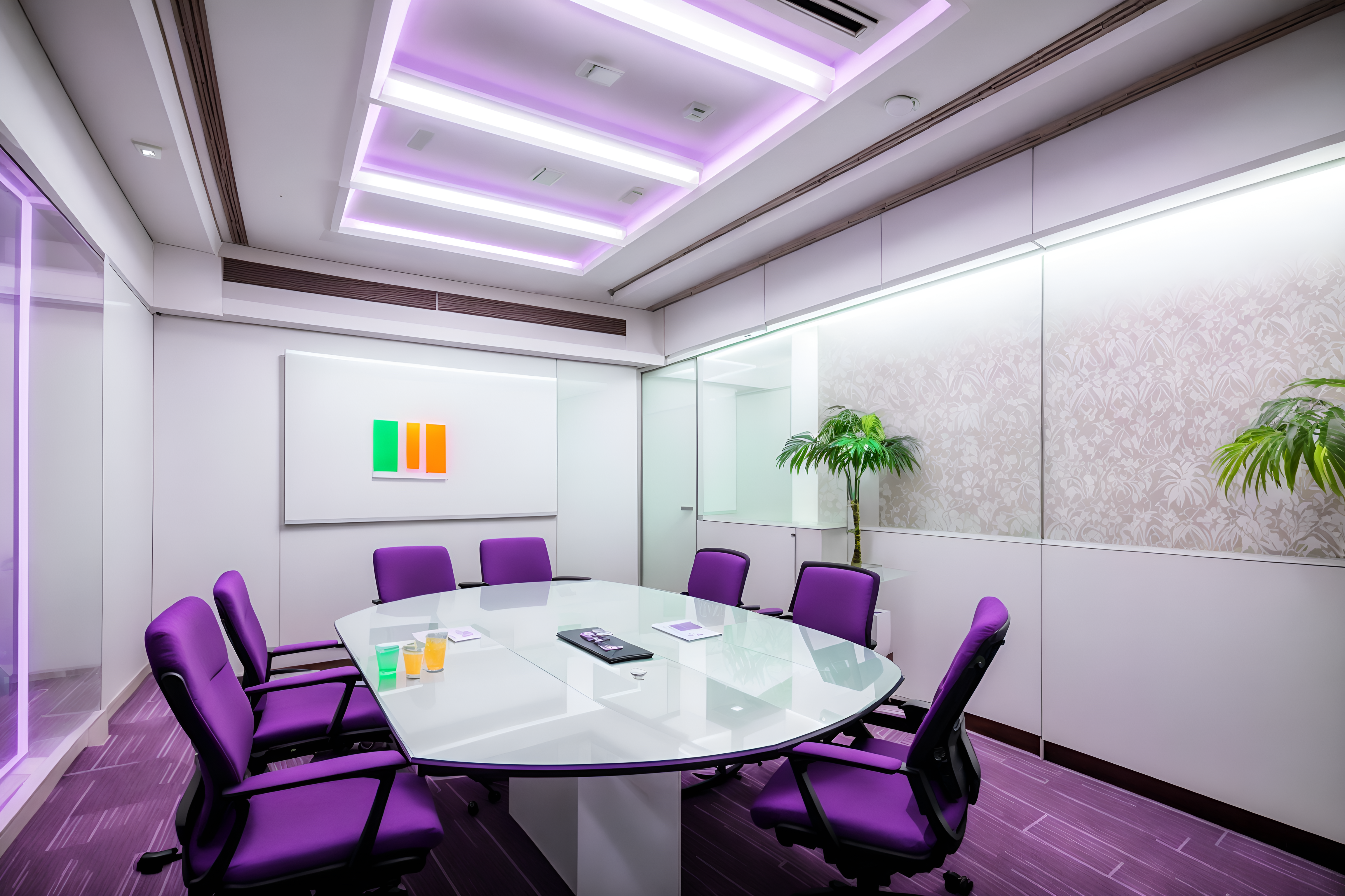 photo from pinterest of vaporwave-style interior designed (meeting room interior) with plant and painting or photo on wall and boardroom table and glass walls and office chairs and cabinets and vase and glass doors. . with purple lights and japanese letters on wall and neon glow and white square bathroom tiles and neon glow and japanese letters on wall and white roman statues, white roman sculptures, white roman columns, white roman pillars in the center of the room, and teal colors. . cinematic photo, highly detailed, cinematic lighting, ultra-detailed, ultrarealistic, photorealism, 8k. trending on pinterest. vaporwave interior design style. masterpiece, cinematic light, ultrarealistic+, photorealistic+, 8k, raw photo, realistic, sharp focus on eyes, (symmetrical eyes), (intact eyes), hyperrealistic, highest quality, best quality, , highly detailed, masterpiece, best quality, extremely detailed 8k wallpaper, masterpiece, best quality, ultra-detailed, best shadow, detailed background, detailed face, detailed eyes, high contrast, best illumination, detailed face, dulux, caustic, dynamic angle, detailed glow. dramatic lighting. highly detailed, insanely detailed hair, symmetrical, intricate details, professionally retouched, 8k high definition. strong bokeh. award winning photo.