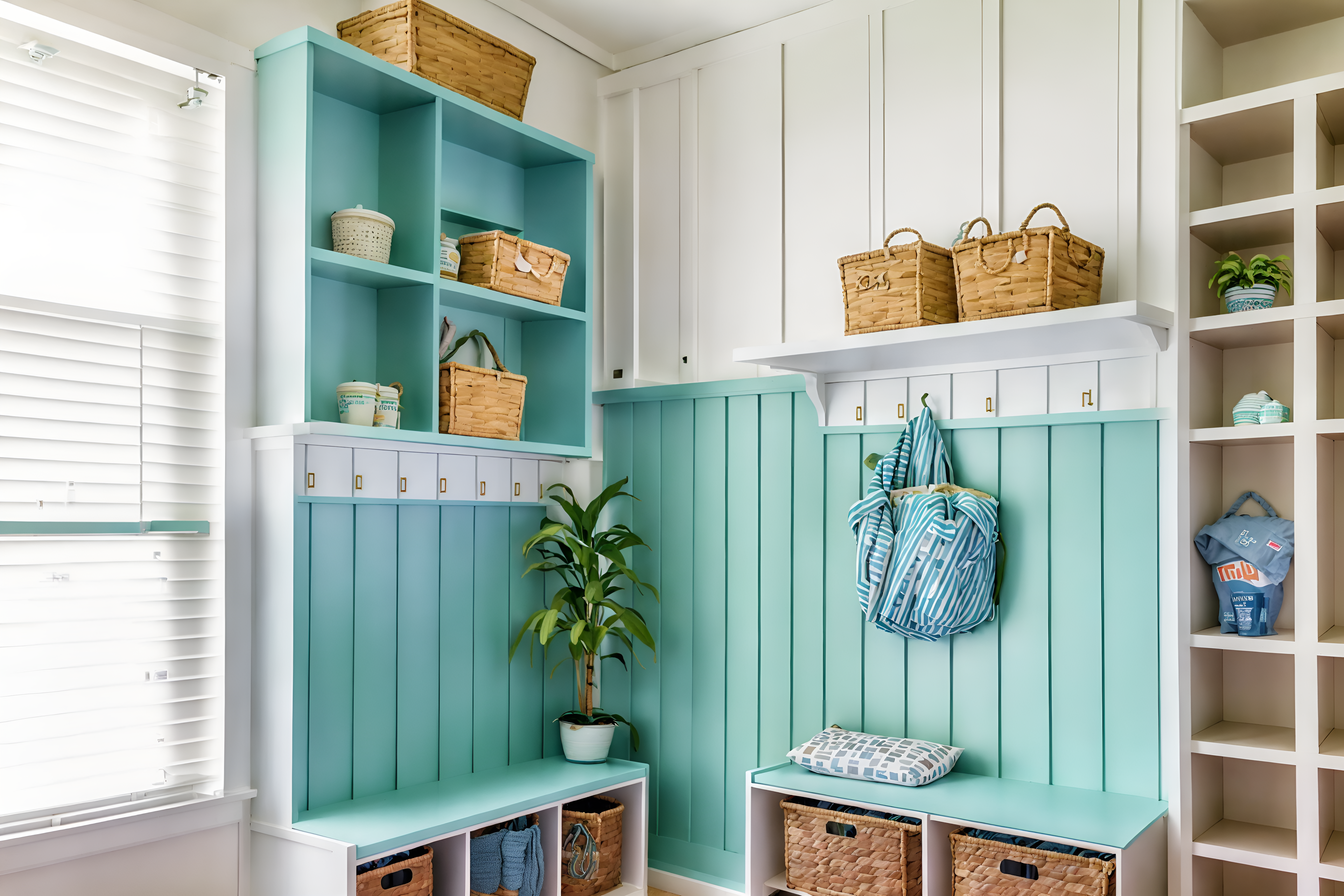 photo from pinterest of vaporwave-style interior designed (mudroom interior) with cubbies and high up storage and storage drawers and storage baskets and shelves for shoes and a bench and wall hooks for coats and cabinets. . with white square bathroom tiles and white square bathroom tiles and washed out colors and baby blue and japanese letters on wall and hanging plants and 1980s retail shops and white square bathroom tiles. . cinematic photo, highly detailed, cinematic lighting, ultra-detailed, ultrarealistic, photorealism, 8k. trending on pinterest. vaporwave interior design style. masterpiece, cinematic light, ultrarealistic+, photorealistic+, 8k, raw photo, realistic, sharp focus on eyes, (symmetrical eyes), (intact eyes), hyperrealistic, highest quality, best quality, , highly detailed, masterpiece, best quality, extremely detailed 8k wallpaper, masterpiece, best quality, ultra-detailed, best shadow, detailed background, detailed face, detailed eyes, high contrast, best illumination, detailed face, dulux, caustic, dynamic angle, detailed glow. dramatic lighting. highly detailed, insanely detailed hair, symmetrical, intricate details, professionally retouched, 8k high definition. strong bokeh. award winning photo.