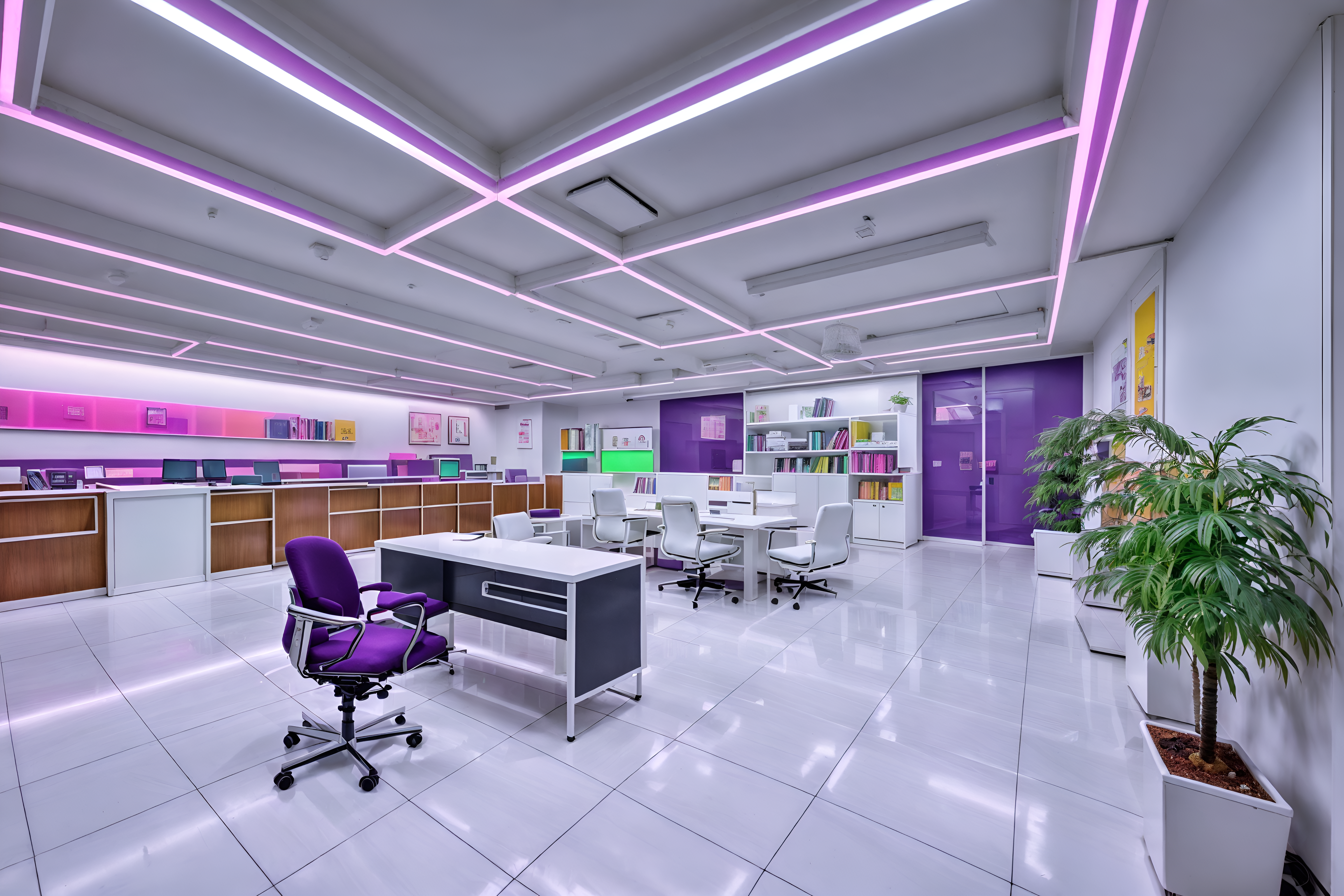 photo from pinterest of vaporwave-style interior designed (study room interior) with office chair and lounge chair and cabinets and desk lamp and plant and writing desk and bookshelves and office chair. . with 1980s retail shops and neon glow and white square bathroom tiles and neon glow and white square bathroom tiles and purple lights and white roman statues, white roman sculptures, white roman columns, white roman pillars in the center of the room, and purple lights. . cinematic photo, highly detailed, cinematic lighting, ultra-detailed, ultrarealistic, photorealism, 8k. trending on pinterest. vaporwave interior design style. masterpiece, cinematic light, ultrarealistic+, photorealistic+, 8k, raw photo, realistic, sharp focus on eyes, (symmetrical eyes), (intact eyes), hyperrealistic, highest quality, best quality, , highly detailed, masterpiece, best quality, extremely detailed 8k wallpaper, masterpiece, best quality, ultra-detailed, best shadow, detailed background, detailed face, detailed eyes, high contrast, best illumination, detailed face, dulux, caustic, dynamic angle, detailed glow. dramatic lighting. highly detailed, insanely detailed hair, symmetrical, intricate details, professionally retouched, 8k high definition. strong bokeh. award winning photo.