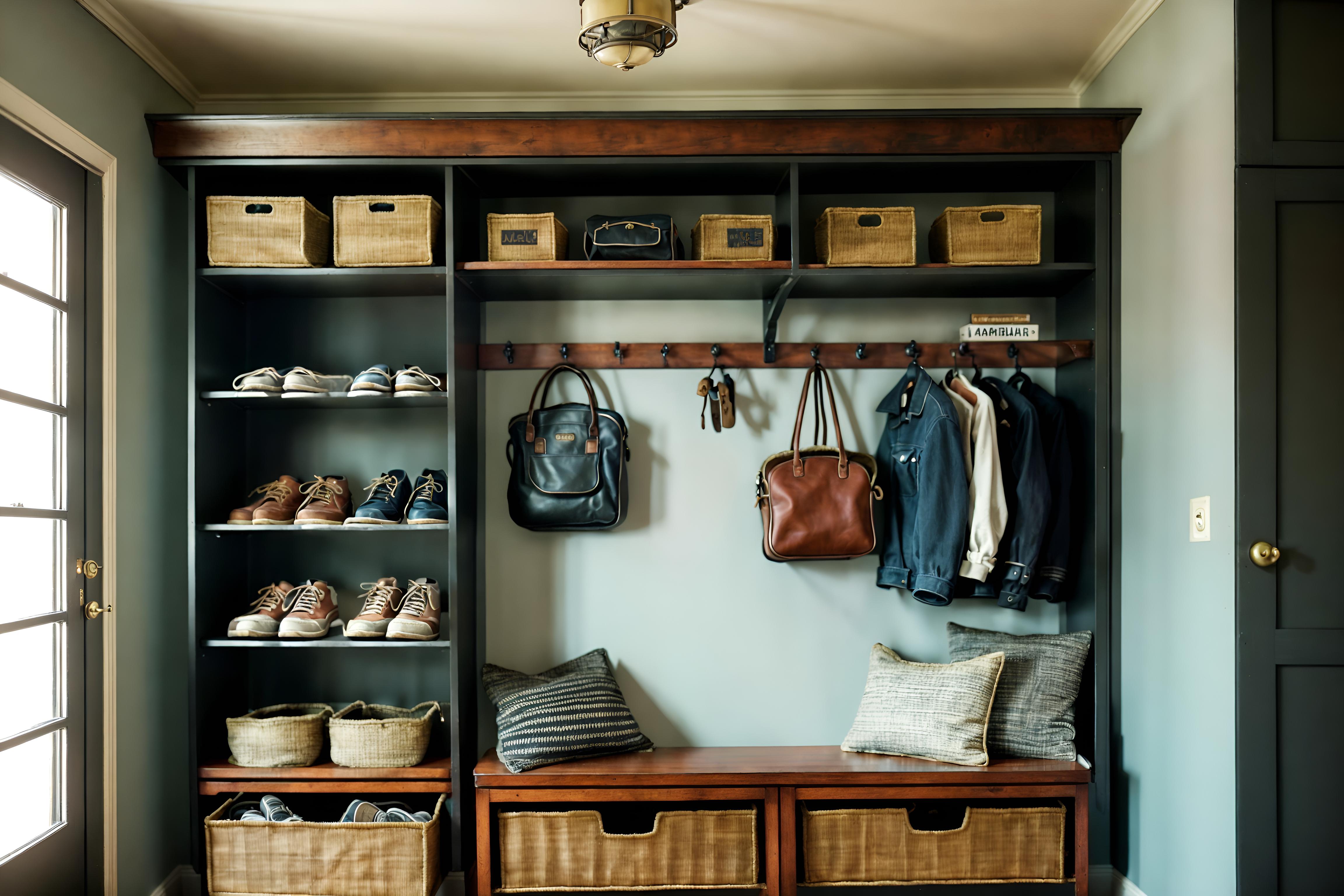 photo from pinterest of vintage-style interior designed (drop zone interior) with shelves for shoes and storage drawers and high up storage and storage baskets and a bench and cubbies and cabinets and wall hooks for coats. . with . . cinematic photo, highly detailed, cinematic lighting, ultra-detailed, ultrarealistic, photorealism, 8k. trending on pinterest. vintage interior design style. masterpiece, cinematic light, ultrarealistic+, photorealistic+, 8k, raw photo, realistic, sharp focus on eyes, (symmetrical eyes), (intact eyes), hyperrealistic, highest quality, best quality, , highly detailed, masterpiece, best quality, extremely detailed 8k wallpaper, masterpiece, best quality, ultra-detailed, best shadow, detailed background, detailed face, detailed eyes, high contrast, best illumination, detailed face, dulux, caustic, dynamic angle, detailed glow. dramatic lighting. highly detailed, insanely detailed hair, symmetrical, intricate details, professionally retouched, 8k high definition. strong bokeh. award winning photo.