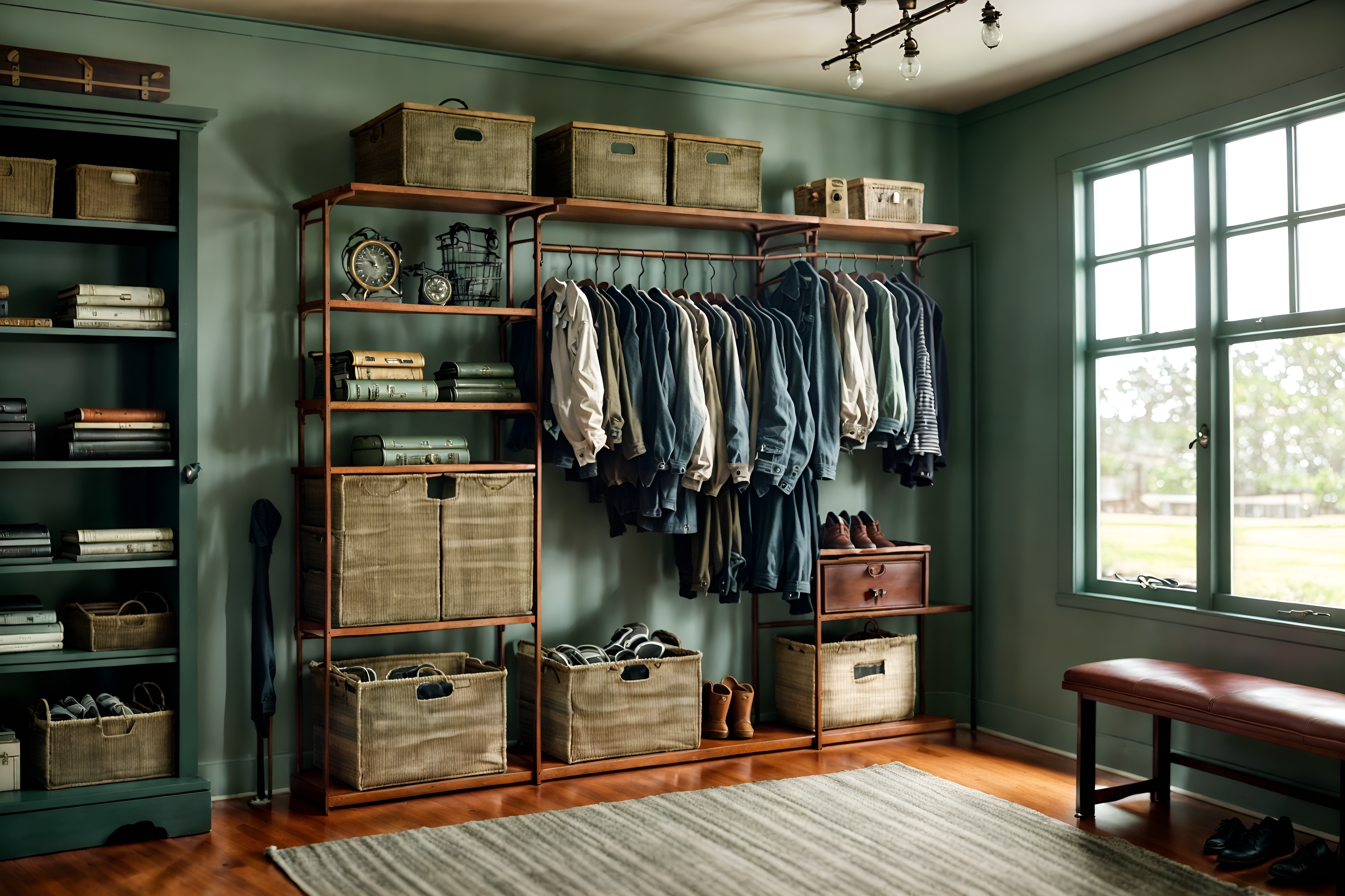 photo from pinterest of vintage-style interior designed (drop zone interior) with shelves for shoes and storage drawers and high up storage and storage baskets and a bench and cubbies and cabinets and wall hooks for coats. . with . . cinematic photo, highly detailed, cinematic lighting, ultra-detailed, ultrarealistic, photorealism, 8k. trending on pinterest. vintage interior design style. masterpiece, cinematic light, ultrarealistic+, photorealistic+, 8k, raw photo, realistic, sharp focus on eyes, (symmetrical eyes), (intact eyes), hyperrealistic, highest quality, best quality, , highly detailed, masterpiece, best quality, extremely detailed 8k wallpaper, masterpiece, best quality, ultra-detailed, best shadow, detailed background, detailed face, detailed eyes, high contrast, best illumination, detailed face, dulux, caustic, dynamic angle, detailed glow. dramatic lighting. highly detailed, insanely detailed hair, symmetrical, intricate details, professionally retouched, 8k high definition. strong bokeh. award winning photo.