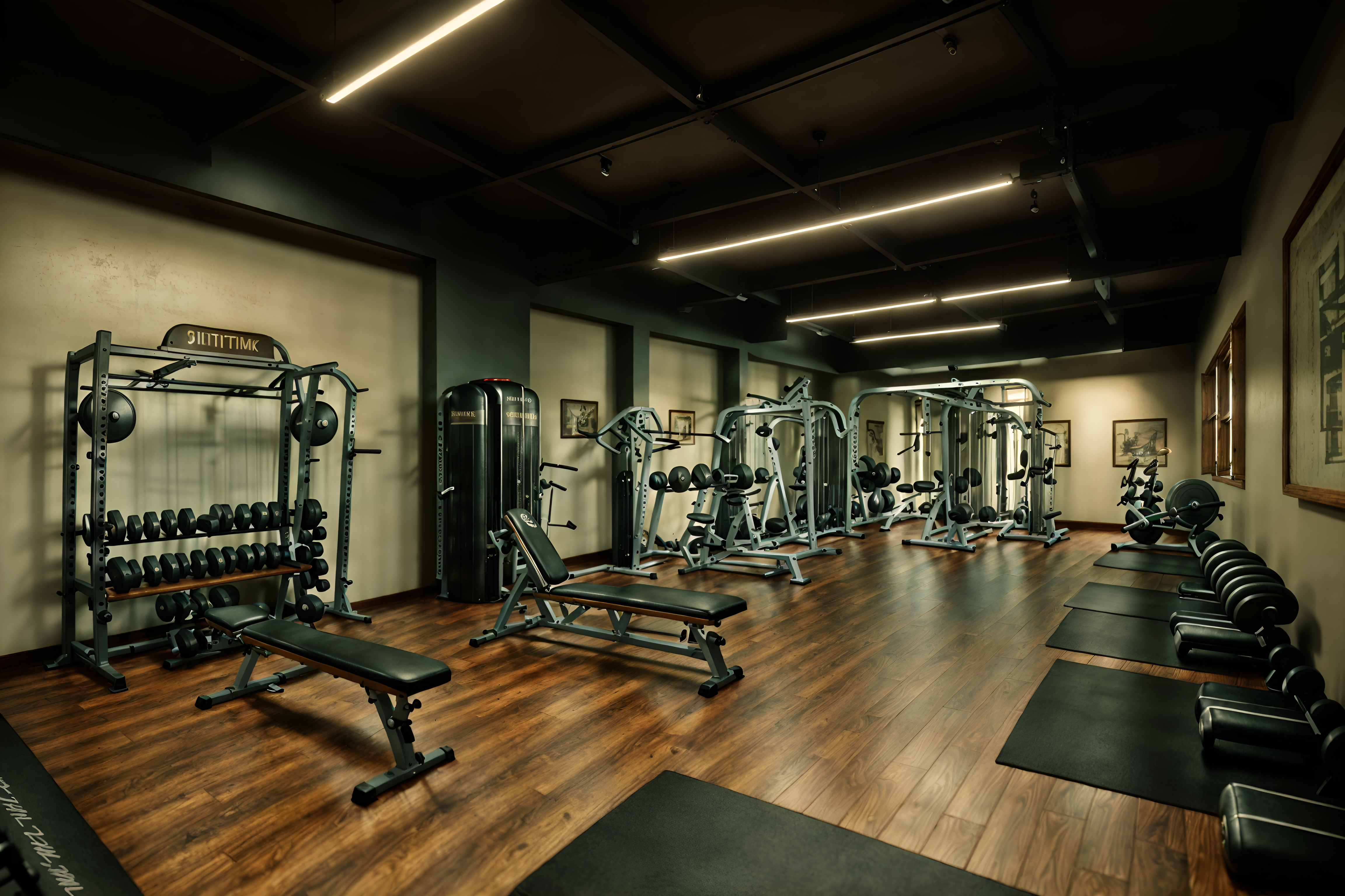 photo from pinterest of vintage-style interior designed (fitness gym interior) with dumbbell stand and exercise bicycle and squat rack and bench press and crosstrainer and dumbbell stand. . with . . cinematic photo, highly detailed, cinematic lighting, ultra-detailed, ultrarealistic, photorealism, 8k. trending on pinterest. vintage interior design style. masterpiece, cinematic light, ultrarealistic+, photorealistic+, 8k, raw photo, realistic, sharp focus on eyes, (symmetrical eyes), (intact eyes), hyperrealistic, highest quality, best quality, , highly detailed, masterpiece, best quality, extremely detailed 8k wallpaper, masterpiece, best quality, ultra-detailed, best shadow, detailed background, detailed face, detailed eyes, high contrast, best illumination, detailed face, dulux, caustic, dynamic angle, detailed glow. dramatic lighting. highly detailed, insanely detailed hair, symmetrical, intricate details, professionally retouched, 8k high definition. strong bokeh. award winning photo.