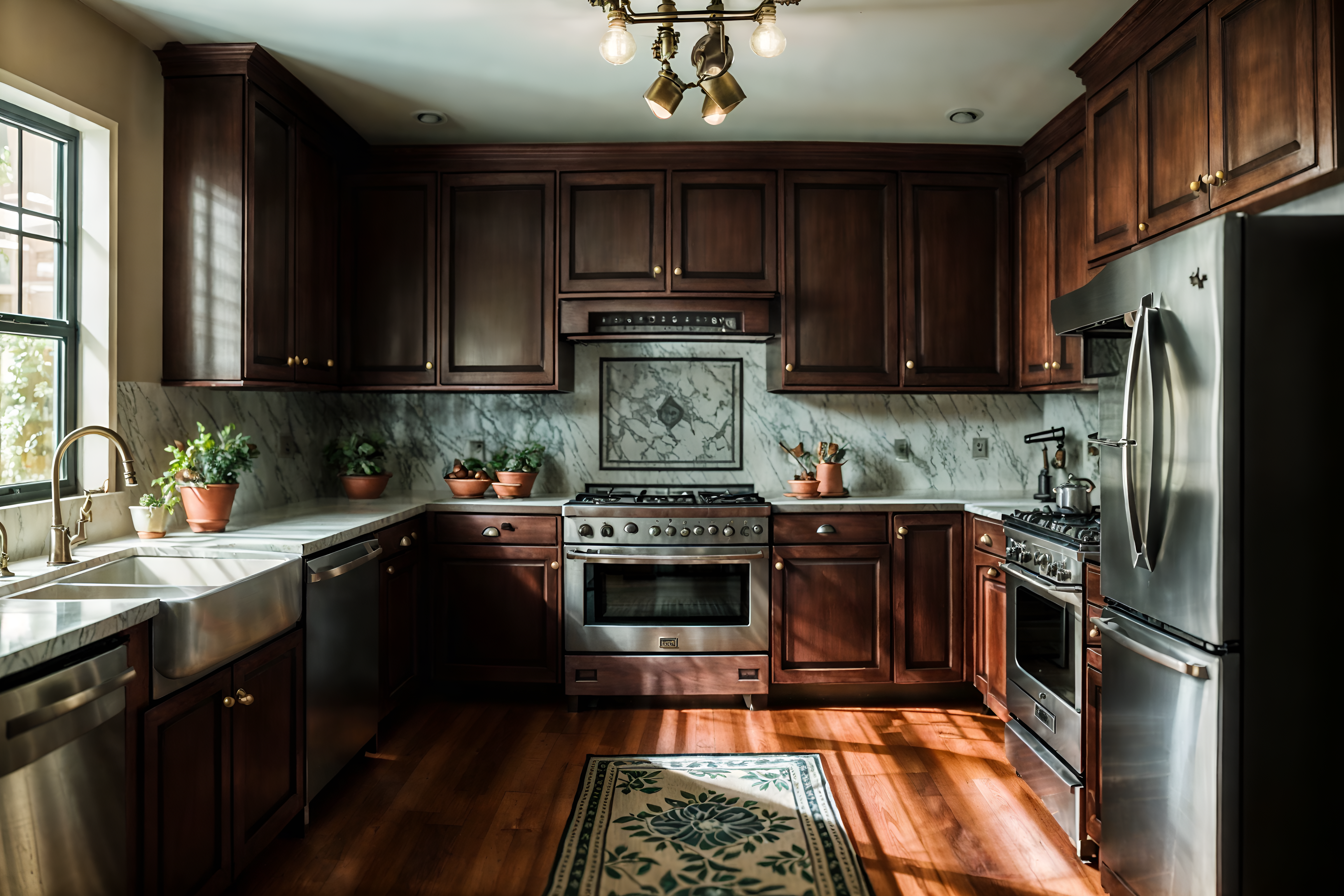 photo from pinterest of vintage-style interior designed (kitchen interior) with refrigerator and sink and stove and plant and worktops and kitchen cabinets and refrigerator. . with . . cinematic photo, highly detailed, cinematic lighting, ultra-detailed, ultrarealistic, photorealism, 8k. trending on pinterest. vintage interior design style. masterpiece, cinematic light, ultrarealistic+, photorealistic+, 8k, raw photo, realistic, sharp focus on eyes, (symmetrical eyes), (intact eyes), hyperrealistic, highest quality, best quality, , highly detailed, masterpiece, best quality, extremely detailed 8k wallpaper, masterpiece, best quality, ultra-detailed, best shadow, detailed background, detailed face, detailed eyes, high contrast, best illumination, detailed face, dulux, caustic, dynamic angle, detailed glow. dramatic lighting. highly detailed, insanely detailed hair, symmetrical, intricate details, professionally retouched, 8k high definition. strong bokeh. award winning photo.