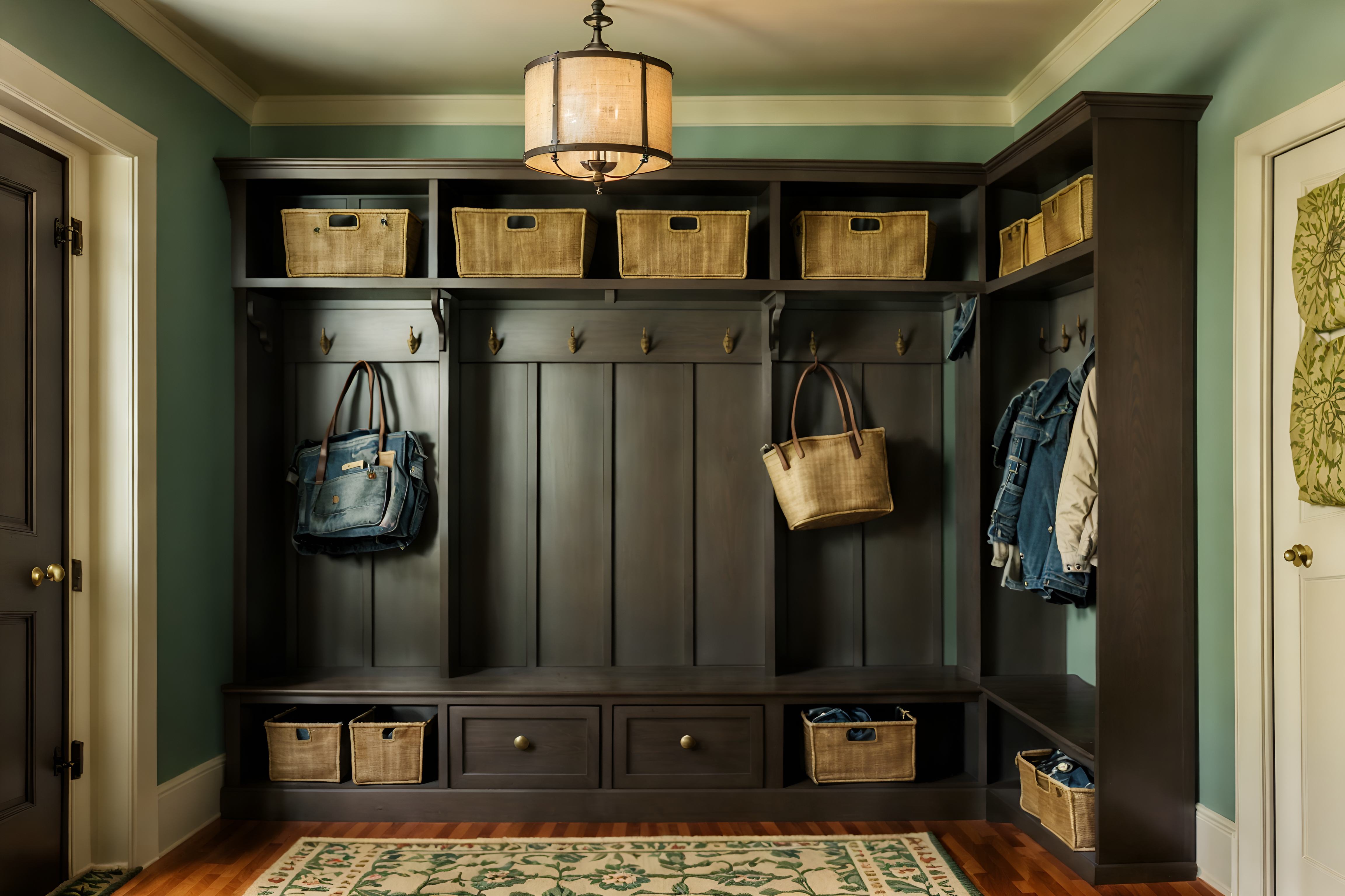 photo from pinterest of vintage-style interior designed (mudroom interior) with cubbies and wall hooks for coats and shelves for shoes and cabinets and a bench and storage baskets and storage drawers and high up storage. . with . . cinematic photo, highly detailed, cinematic lighting, ultra-detailed, ultrarealistic, photorealism, 8k. trending on pinterest. vintage interior design style. masterpiece, cinematic light, ultrarealistic+, photorealistic+, 8k, raw photo, realistic, sharp focus on eyes, (symmetrical eyes), (intact eyes), hyperrealistic, highest quality, best quality, , highly detailed, masterpiece, best quality, extremely detailed 8k wallpaper, masterpiece, best quality, ultra-detailed, best shadow, detailed background, detailed face, detailed eyes, high contrast, best illumination, detailed face, dulux, caustic, dynamic angle, detailed glow. dramatic lighting. highly detailed, insanely detailed hair, symmetrical, intricate details, professionally retouched, 8k high definition. strong bokeh. award winning photo.