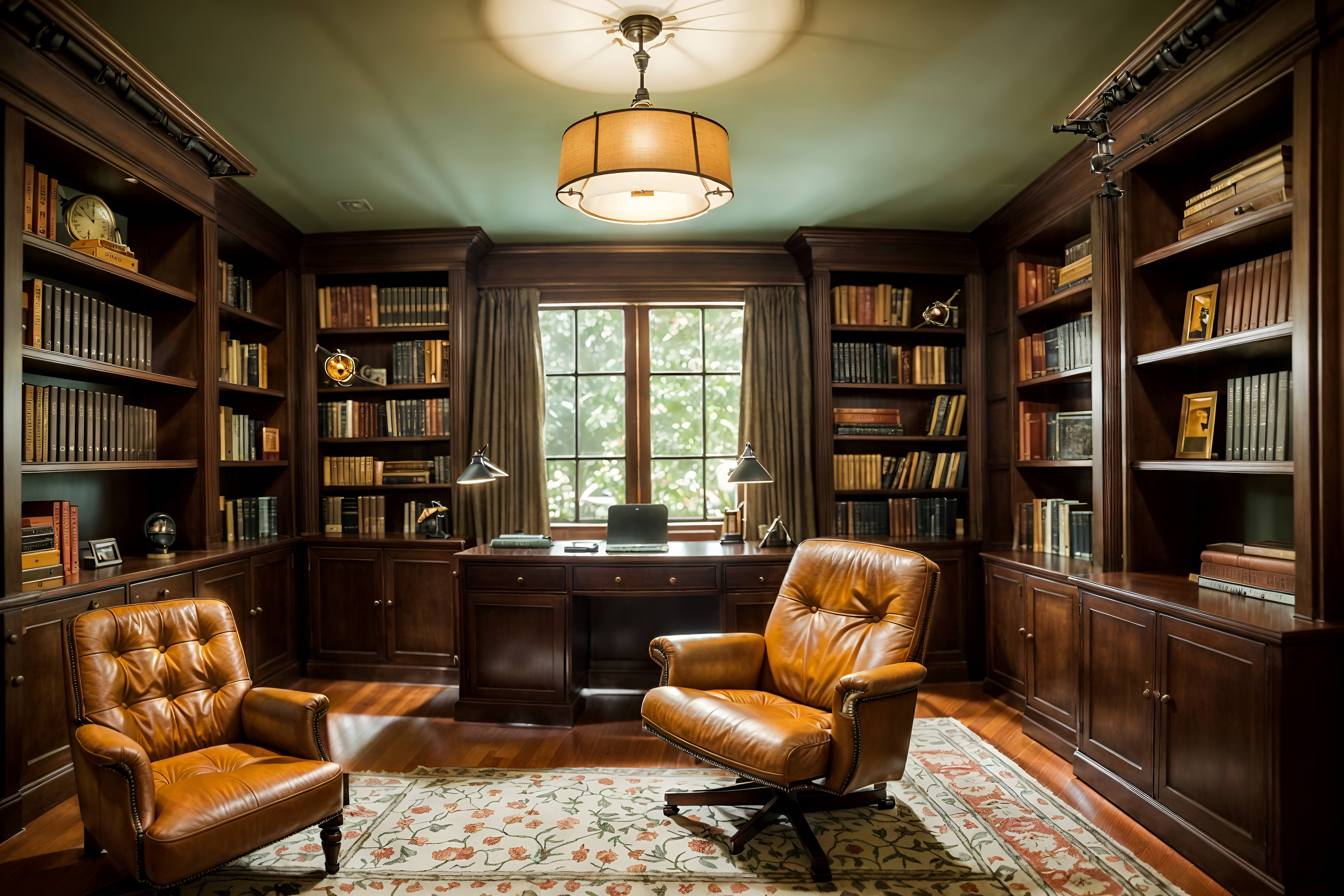 photo from pinterest of vintage-style interior designed (study room interior) with lounge chair and office chair and bookshelves and desk lamp and cabinets and plant and writing desk and lounge chair. . with . . cinematic photo, highly detailed, cinematic lighting, ultra-detailed, ultrarealistic, photorealism, 8k. trending on pinterest. vintage interior design style. masterpiece, cinematic light, ultrarealistic+, photorealistic+, 8k, raw photo, realistic, sharp focus on eyes, (symmetrical eyes), (intact eyes), hyperrealistic, highest quality, best quality, , highly detailed, masterpiece, best quality, extremely detailed 8k wallpaper, masterpiece, best quality, ultra-detailed, best shadow, detailed background, detailed face, detailed eyes, high contrast, best illumination, detailed face, dulux, caustic, dynamic angle, detailed glow. dramatic lighting. highly detailed, insanely detailed hair, symmetrical, intricate details, professionally retouched, 8k high definition. strong bokeh. award winning photo.