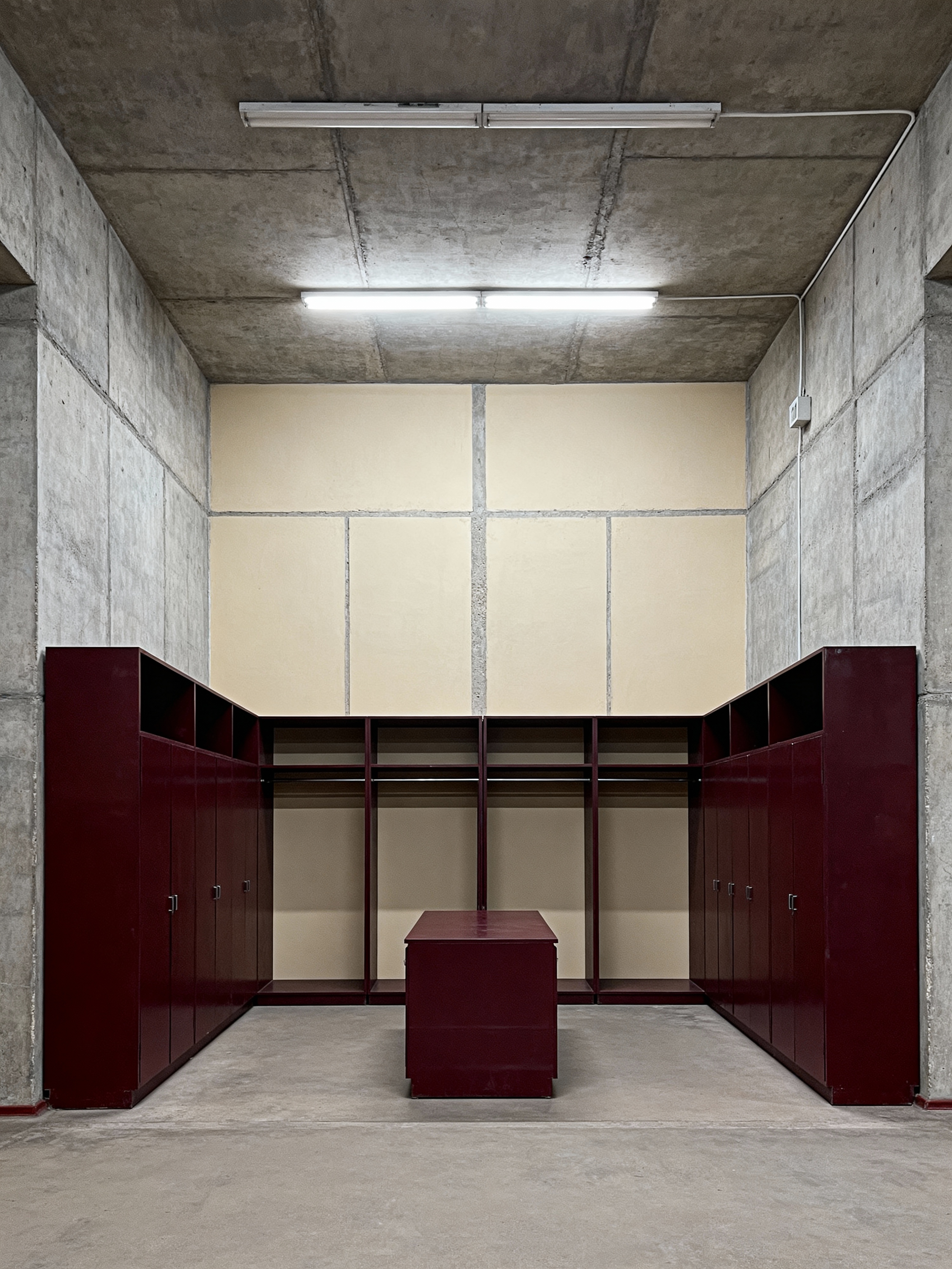 walk in closet with soviet style . with communist design and concrete structures and utilitarian design and institutional look and monumental scale and brutalist style and socialist realism and functional furniture