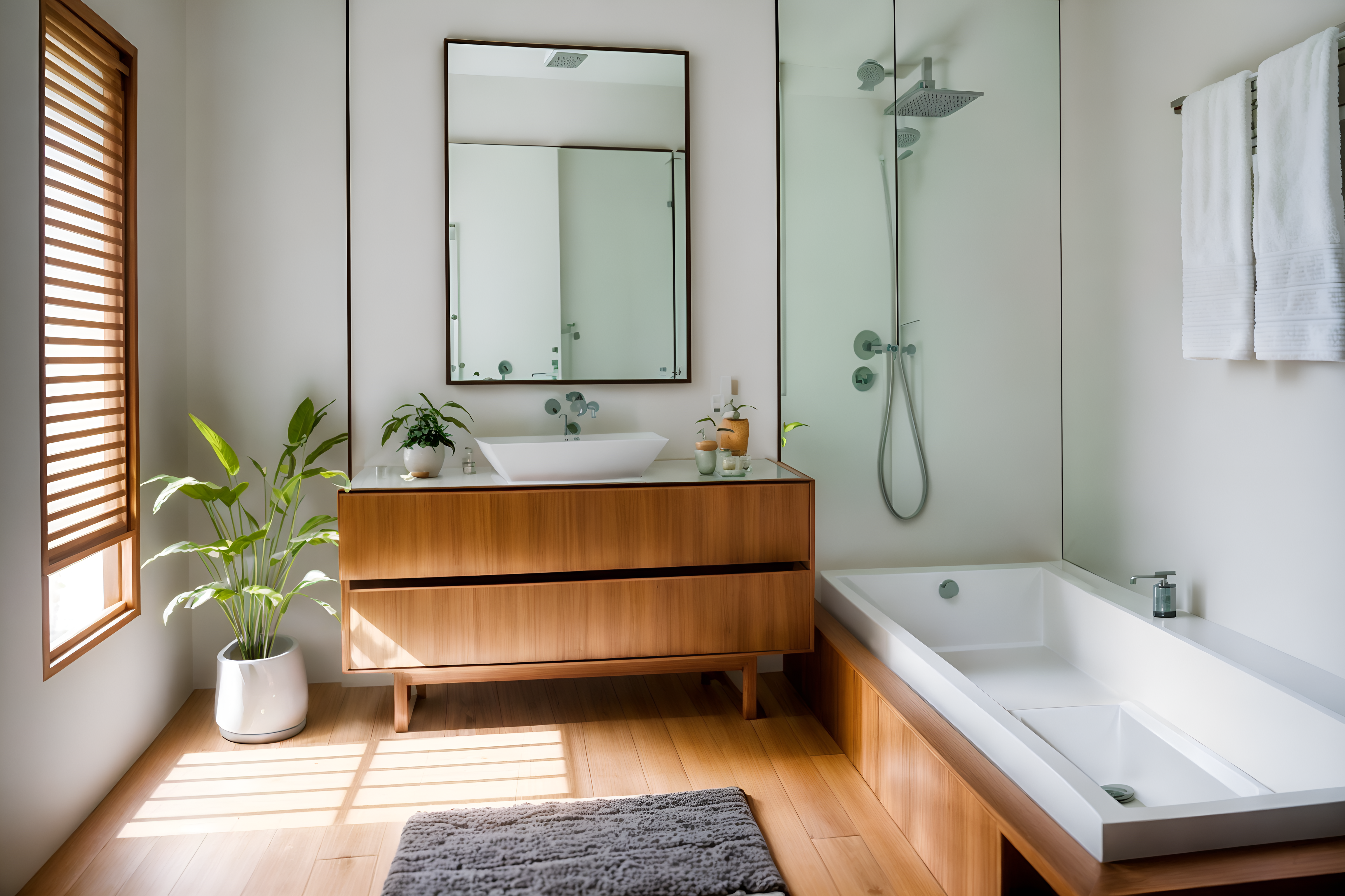 photo from pinterest of zen-style interior designed (bathroom interior) with bath rail and shower and bathroom cabinet and plant and bath towel and waste basket and mirror and bathroom sink with faucet. . with asian zen interior and simple furniture and simplicity and serenity and harmony and asian zen interior and japanese minimalist interior and clutter free and japanese minimalist interior. . cinematic photo, highly detailed, cinematic lighting, ultra-detailed, ultrarealistic, photorealism, 8k. trending on pinterest. zen interior design style. masterpiece, cinematic light, ultrarealistic+, photorealistic+, 8k, raw photo, realistic, sharp focus on eyes, (symmetrical eyes), (intact eyes), hyperrealistic, highest quality, best quality, , highly detailed, masterpiece, best quality, extremely detailed 8k wallpaper, masterpiece, best quality, ultra-detailed, best shadow, detailed background, detailed face, detailed eyes, high contrast, best illumination, detailed face, dulux, caustic, dynamic angle, detailed glow. dramatic lighting. highly detailed, insanely detailed hair, symmetrical, intricate details, professionally retouched, 8k high definition. strong bokeh. award winning photo.