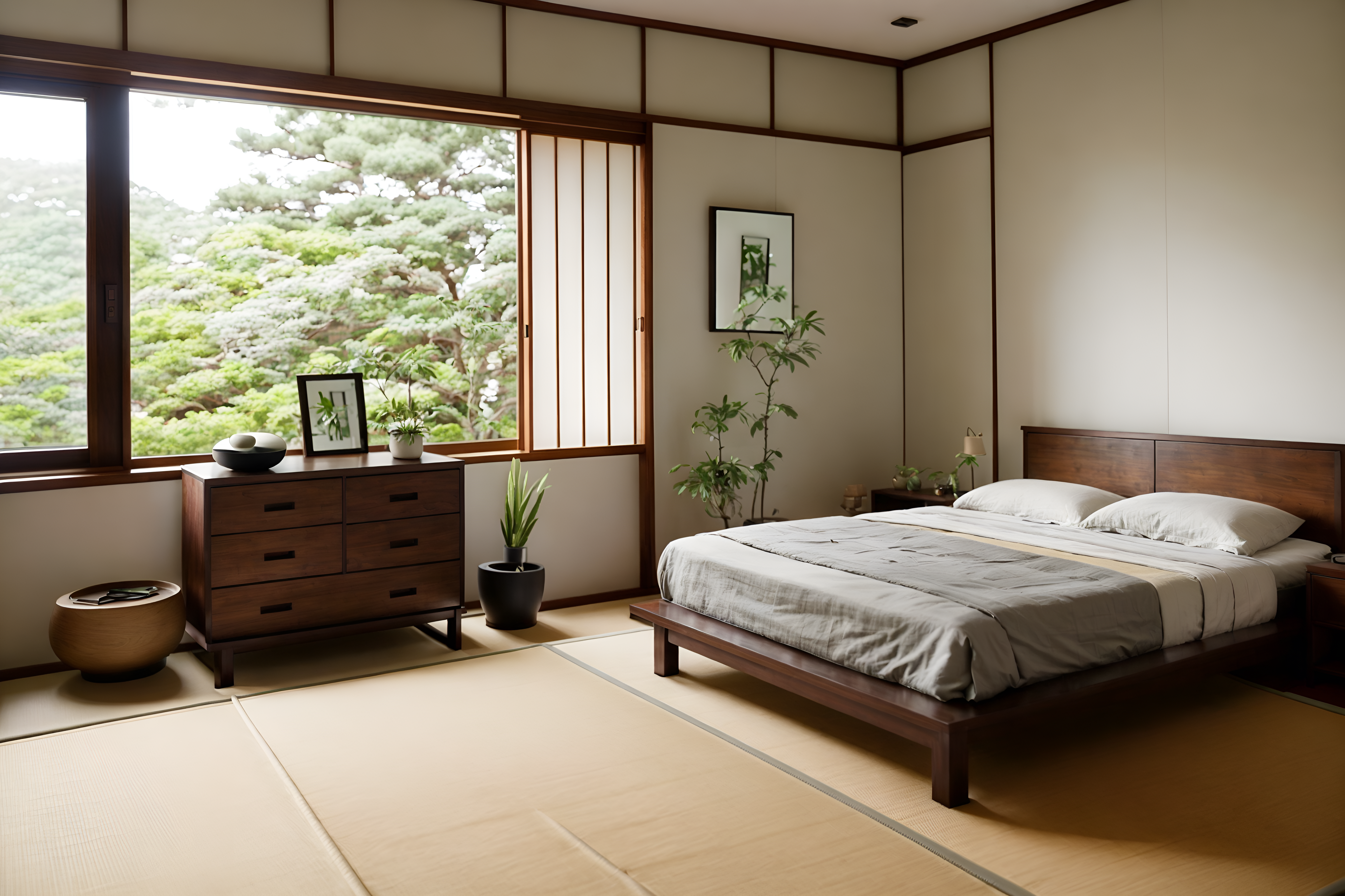 photo from pinterest of zen-style interior designed (bedroom interior) with accent chair and dresser closet and bedside table or night stand and bed and plant and storage bench or ottoman and headboard and mirror. . with asian interior and natural light and japanese minimalist interior and japanese minimalist interior and mimimalist and japanese interior and simplicity and calm and neutral colors. . cinematic photo, highly detailed, cinematic lighting, ultra-detailed, ultrarealistic, photorealism, 8k. trending on pinterest. zen interior design style. masterpiece, cinematic light, ultrarealistic+, photorealistic+, 8k, raw photo, realistic, sharp focus on eyes, (symmetrical eyes), (intact eyes), hyperrealistic, highest quality, best quality, , highly detailed, masterpiece, best quality, extremely detailed 8k wallpaper, masterpiece, best quality, ultra-detailed, best shadow, detailed background, detailed face, detailed eyes, high contrast, best illumination, detailed face, dulux, caustic, dynamic angle, detailed glow. dramatic lighting. highly detailed, insanely detailed hair, symmetrical, intricate details, professionally retouched, 8k high definition. strong bokeh. award winning photo.