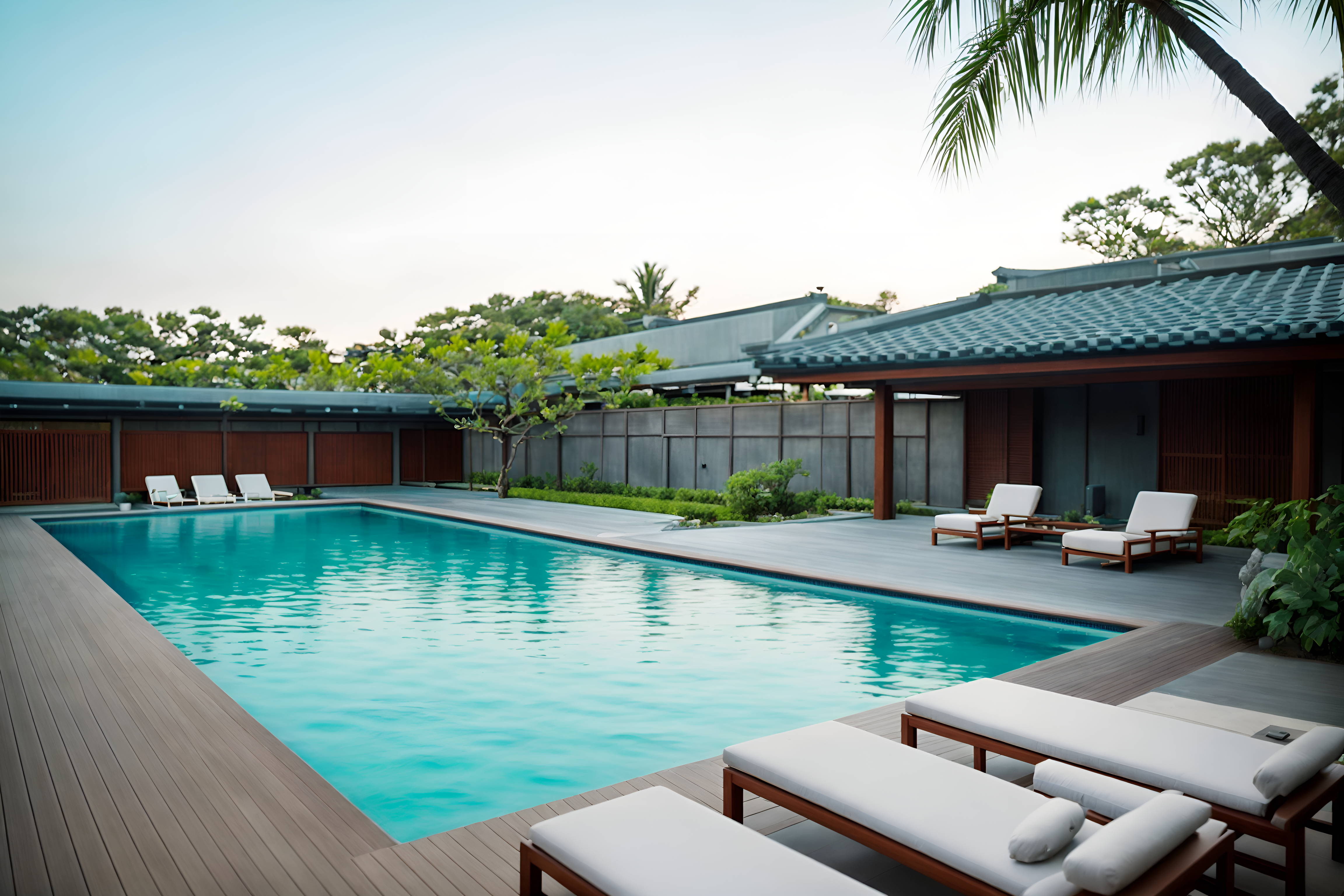 photo from pinterest of zen-style designed (outdoor pool area ) with pool lounge chairs and pool lights and pool and pool lounge chairs. . with simplicity and clean lines and mimimalist and japanese minimalist and calm and neutral colors and asian and natural light and simple furniture. . cinematic photo, highly detailed, cinematic lighting, ultra-detailed, ultrarealistic, photorealism, 8k. trending on pinterest. zen design style. masterpiece, cinematic light, ultrarealistic+, photorealistic+, 8k, raw photo, realistic, sharp focus on eyes, (symmetrical eyes), (intact eyes), hyperrealistic, highest quality, best quality, , highly detailed, masterpiece, best quality, extremely detailed 8k wallpaper, masterpiece, best quality, ultra-detailed, best shadow, detailed background, detailed face, detailed eyes, high contrast, best illumination, detailed face, dulux, caustic, dynamic angle, detailed glow. dramatic lighting. highly detailed, insanely detailed hair, symmetrical, intricate details, professionally retouched, 8k high definition. strong bokeh. award winning photo.