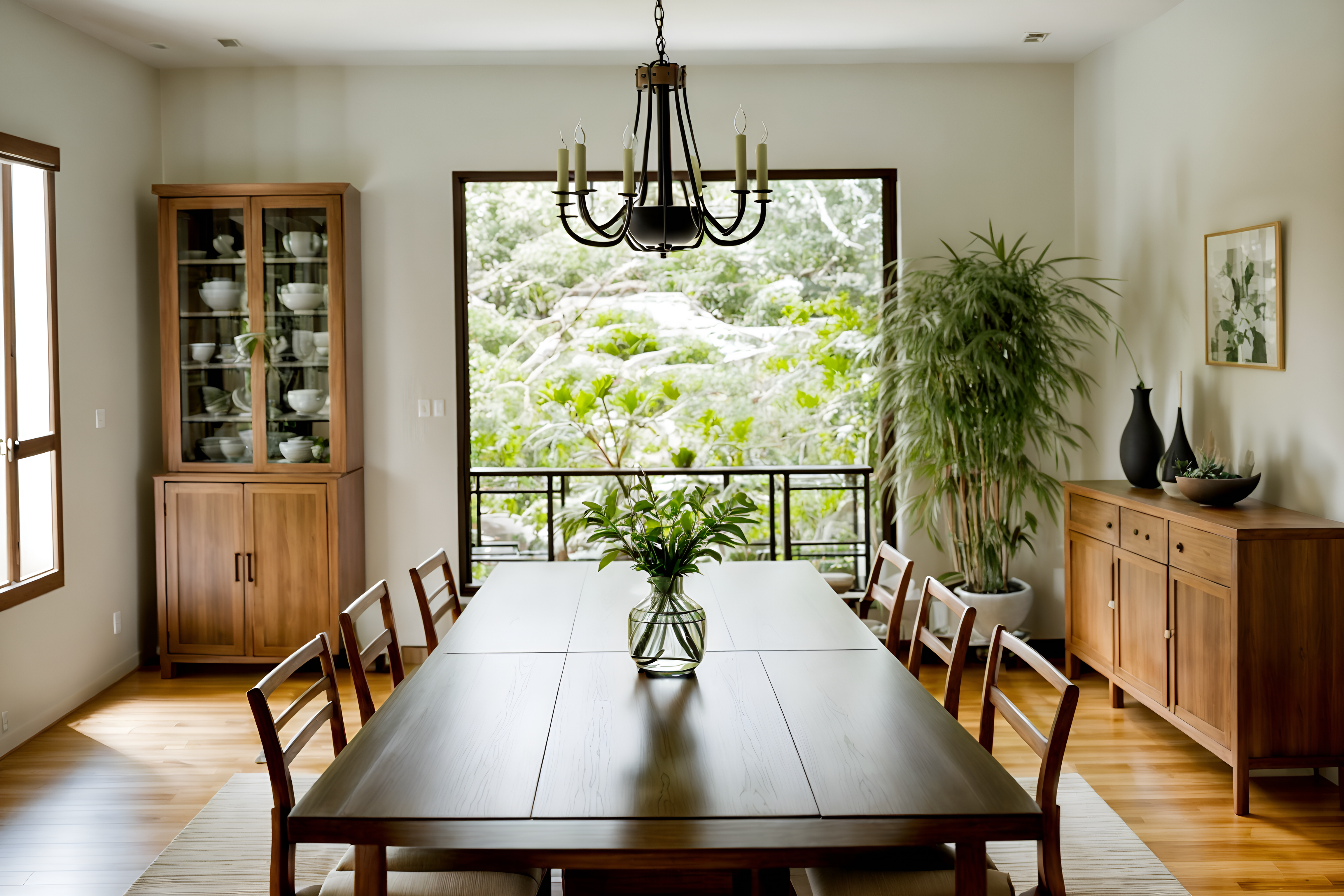 photo from pinterest of zen-style interior designed (dining room interior) with vase and dining table and plant and plates, cutlery and glasses on dining table and dining table chairs and painting or photo on wall and light or chandelier and bookshelves. . with serenity and harmony and natural light and natural textures and simplicity and asian interior and simple furniture and calm and neutral colors and japanese minimalist interior. . cinematic photo, highly detailed, cinematic lighting, ultra-detailed, ultrarealistic, photorealism, 8k. trending on pinterest. zen interior design style. masterpiece, cinematic light, ultrarealistic+, photorealistic+, 8k, raw photo, realistic, sharp focus on eyes, (symmetrical eyes), (intact eyes), hyperrealistic, highest quality, best quality, , highly detailed, masterpiece, best quality, extremely detailed 8k wallpaper, masterpiece, best quality, ultra-detailed, best shadow, detailed background, detailed face, detailed eyes, high contrast, best illumination, detailed face, dulux, caustic, dynamic angle, detailed glow. dramatic lighting. highly detailed, insanely detailed hair, symmetrical, intricate details, professionally retouched, 8k high definition. strong bokeh. award winning photo.