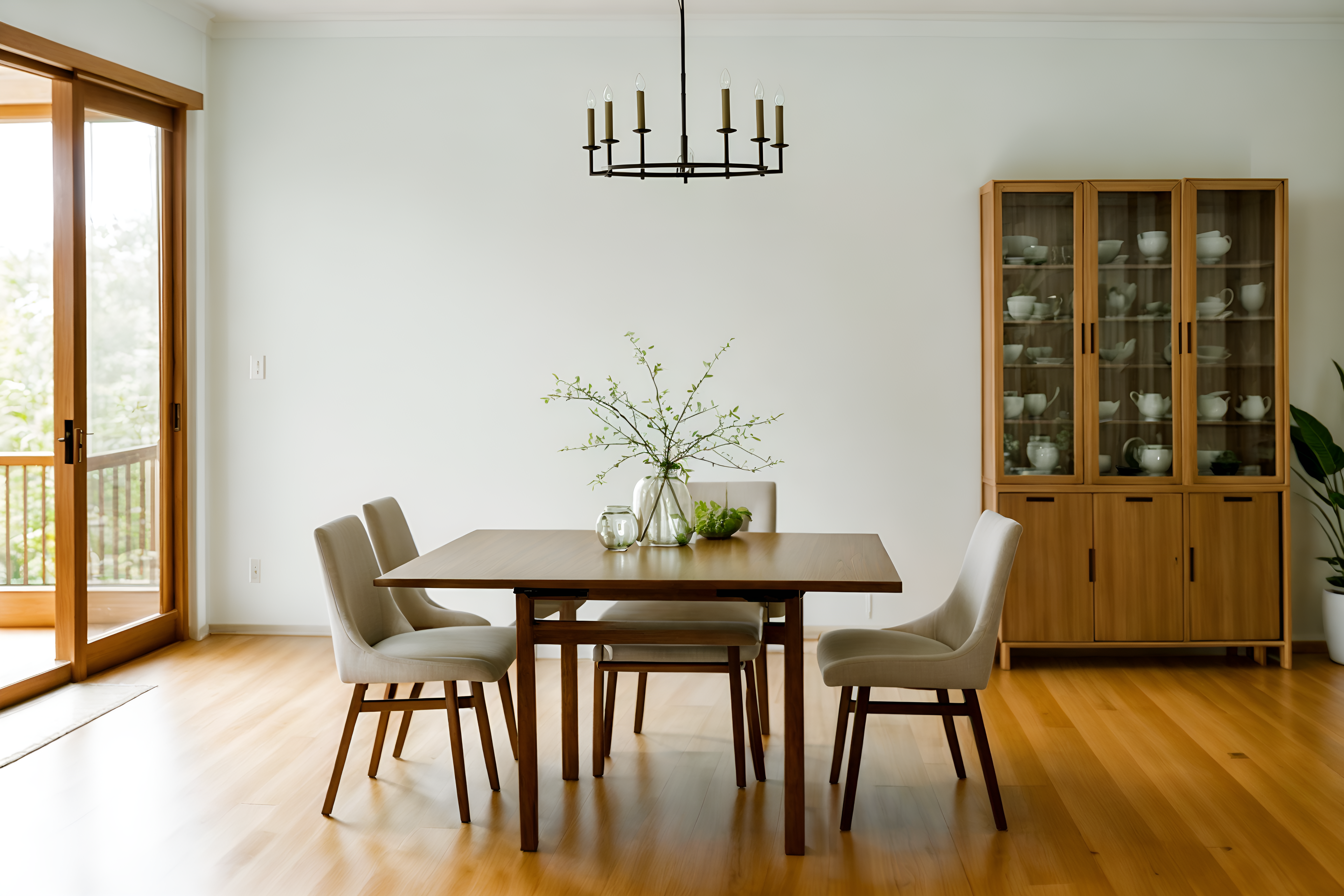 photo from pinterest of zen-style interior designed (dining room interior) with vase and dining table and plant and plates, cutlery and glasses on dining table and dining table chairs and painting or photo on wall and light or chandelier and bookshelves. . with serenity and harmony and natural light and natural textures and simplicity and asian interior and simple furniture and calm and neutral colors and japanese minimalist interior. . cinematic photo, highly detailed, cinematic lighting, ultra-detailed, ultrarealistic, photorealism, 8k. trending on pinterest. zen interior design style. masterpiece, cinematic light, ultrarealistic+, photorealistic+, 8k, raw photo, realistic, sharp focus on eyes, (symmetrical eyes), (intact eyes), hyperrealistic, highest quality, best quality, , highly detailed, masterpiece, best quality, extremely detailed 8k wallpaper, masterpiece, best quality, ultra-detailed, best shadow, detailed background, detailed face, detailed eyes, high contrast, best illumination, detailed face, dulux, caustic, dynamic angle, detailed glow. dramatic lighting. highly detailed, insanely detailed hair, symmetrical, intricate details, professionally retouched, 8k high definition. strong bokeh. award winning photo.