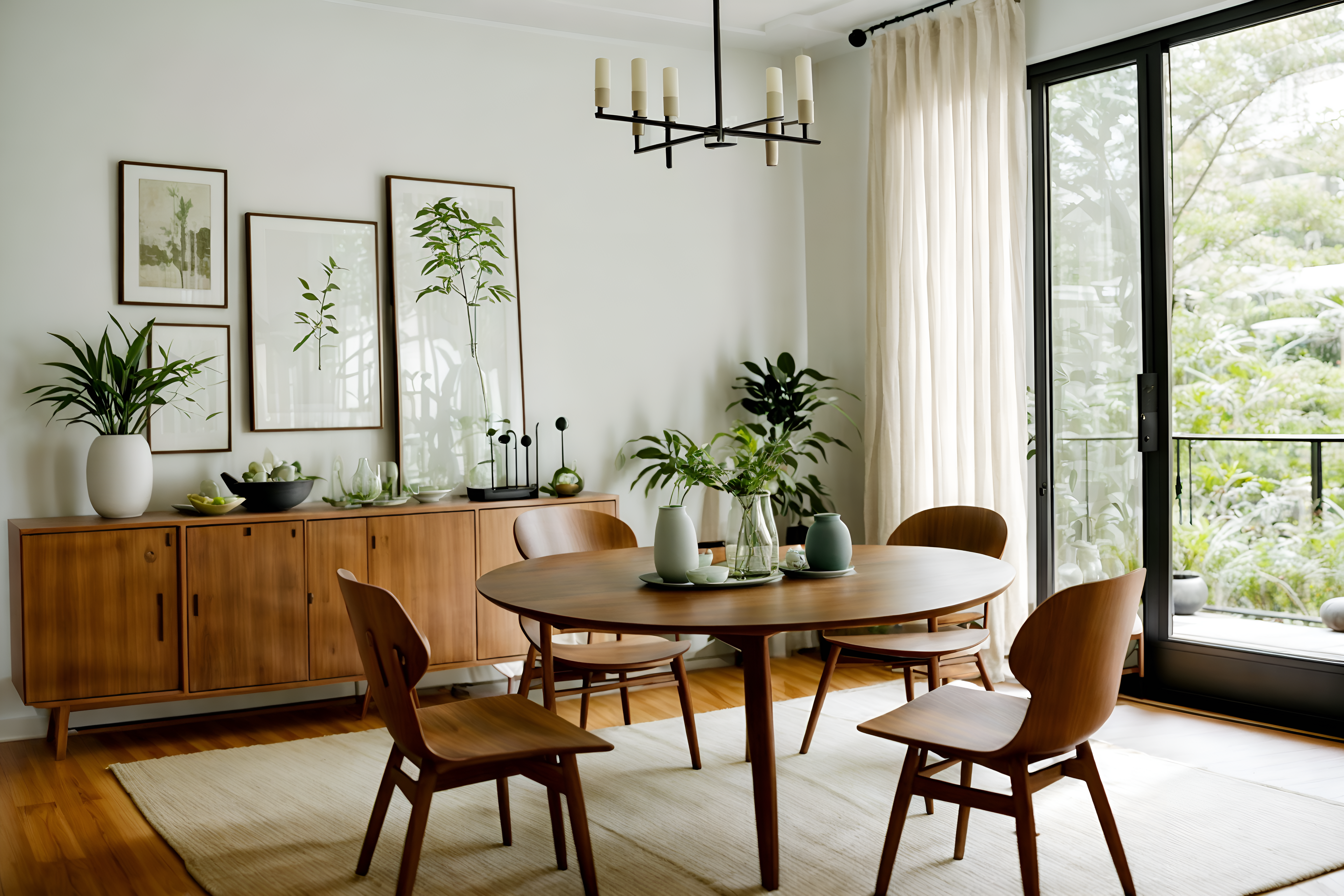 photo from pinterest of zen-style interior designed (dining room interior) with vase and dining table and plant and plates, cutlery and glasses on dining table and dining table chairs and painting or photo on wall and light or chandelier and bookshelves. . with serenity and harmony and natural light and natural textures and simplicity and asian interior and simple furniture and calm and neutral colors and japanese minimalist interior. . cinematic photo, highly detailed, cinematic lighting, ultra-detailed, ultrarealistic, photorealism, 8k. trending on pinterest. zen interior design style. masterpiece, cinematic light, ultrarealistic+, photorealistic+, 8k, raw photo, realistic, sharp focus on eyes, (symmetrical eyes), (intact eyes), hyperrealistic, highest quality, best quality, , highly detailed, masterpiece, best quality, extremely detailed 8k wallpaper, masterpiece, best quality, ultra-detailed, best shadow, detailed background, detailed face, detailed eyes, high contrast, best illumination, detailed face, dulux, caustic, dynamic angle, detailed glow. dramatic lighting. highly detailed, insanely detailed hair, symmetrical, intricate details, professionally retouched, 8k high definition. strong bokeh. award winning photo.
