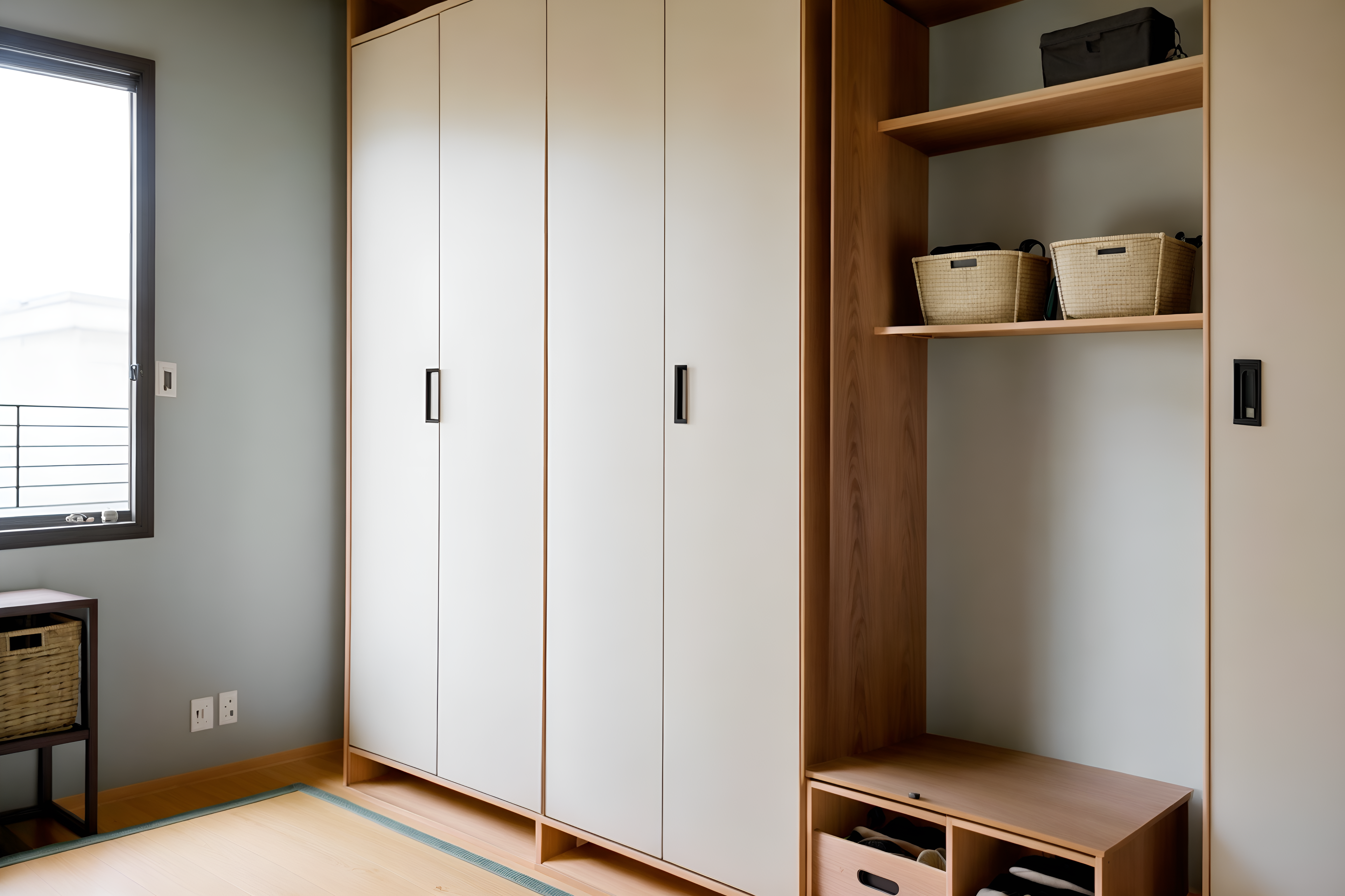 photo from pinterest of zen-style interior designed (drop zone interior) with storage baskets and shelves for shoes and cabinets and lockers and wall hooks for coats and storage drawers and cubbies and high up storage. . with japanese minimalist interior and japanese minimalist interior and simplicity and clean lines and natural light and serenity and harmony and asian zen interior and asian interior. . cinematic photo, highly detailed, cinematic lighting, ultra-detailed, ultrarealistic, photorealism, 8k. trending on pinterest. zen interior design style. masterpiece, cinematic light, ultrarealistic+, photorealistic+, 8k, raw photo, realistic, sharp focus on eyes, (symmetrical eyes), (intact eyes), hyperrealistic, highest quality, best quality, , highly detailed, masterpiece, best quality, extremely detailed 8k wallpaper, masterpiece, best quality, ultra-detailed, best shadow, detailed background, detailed face, detailed eyes, high contrast, best illumination, detailed face, dulux, caustic, dynamic angle, detailed glow. dramatic lighting. highly detailed, insanely detailed hair, symmetrical, intricate details, professionally retouched, 8k high definition. strong bokeh. award winning photo.
