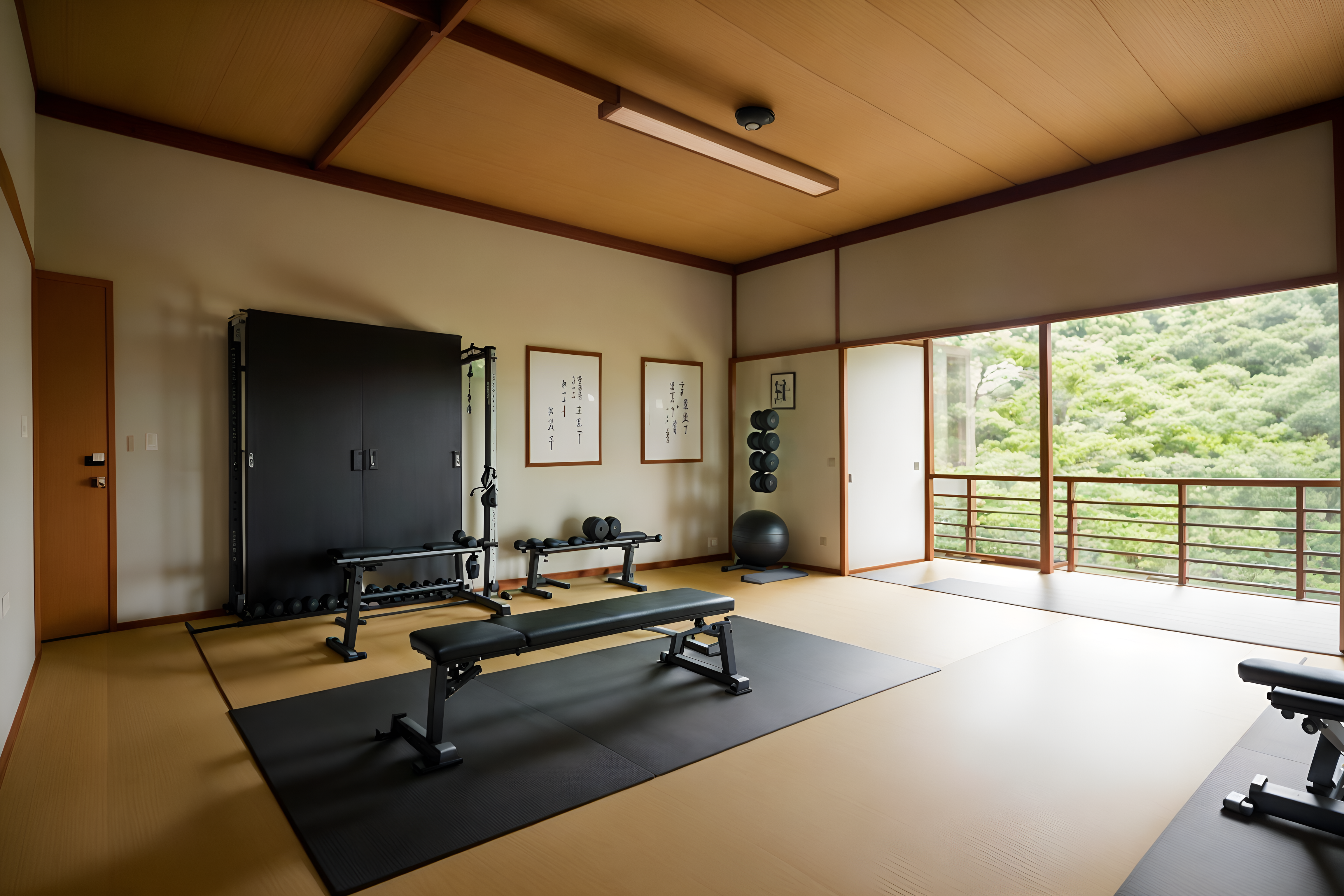 photo from pinterest of zen-style interior designed (fitness gym interior) with crosstrainer and bench press and dumbbell stand and exercise bicycle and squat rack and crosstrainer. . with serenity and harmony and calm and neutral colors and japanese interior and natural light and japanese minimalist interior and simple furniture and asian zen interior and asian interior. . cinematic photo, highly detailed, cinematic lighting, ultra-detailed, ultrarealistic, photorealism, 8k. trending on pinterest. zen interior design style. masterpiece, cinematic light, ultrarealistic+, photorealistic+, 8k, raw photo, realistic, sharp focus on eyes, (symmetrical eyes), (intact eyes), hyperrealistic, highest quality, best quality, , highly detailed, masterpiece, best quality, extremely detailed 8k wallpaper, masterpiece, best quality, ultra-detailed, best shadow, detailed background, detailed face, detailed eyes, high contrast, best illumination, detailed face, dulux, caustic, dynamic angle, detailed glow. dramatic lighting. highly detailed, insanely detailed hair, symmetrical, intricate details, professionally retouched, 8k high definition. strong bokeh. award winning photo.