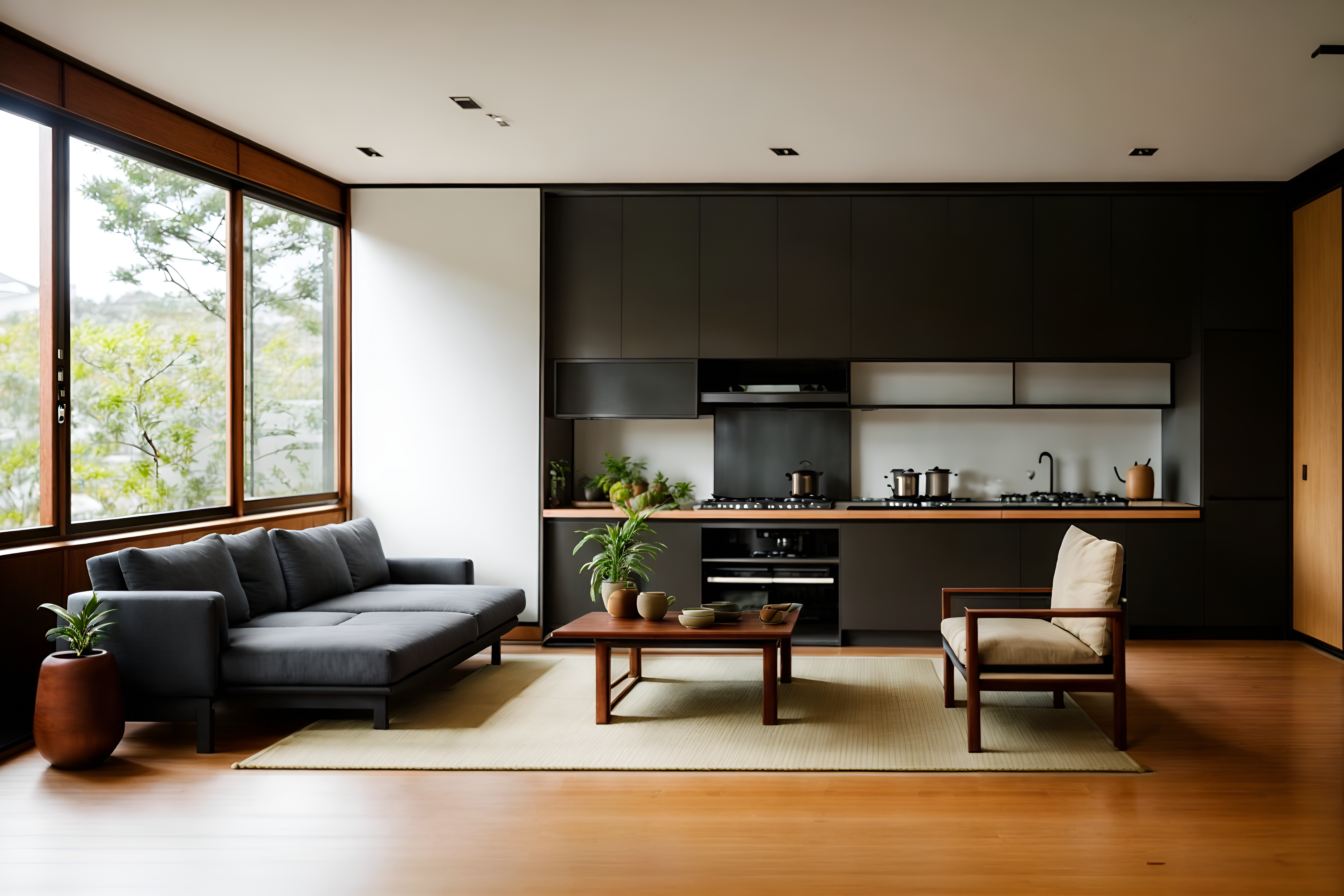photo from pinterest of zen-style interior designed (kitchen living combo interior) with plant and sink and chairs and stove and rug and coffee tables and sofa and occasional tables. . with asian interior and simple furniture and japanese minimalist interior and clean lines and simplicity and japanese minimalist interior and japanese minimalist interior and natural light. . cinematic photo, highly detailed, cinematic lighting, ultra-detailed, ultrarealistic, photorealism, 8k. trending on pinterest. zen interior design style. masterpiece, cinematic light, ultrarealistic+, photorealistic+, 8k, raw photo, realistic, sharp focus on eyes, (symmetrical eyes), (intact eyes), hyperrealistic, highest quality, best quality, , highly detailed, masterpiece, best quality, extremely detailed 8k wallpaper, masterpiece, best quality, ultra-detailed, best shadow, detailed background, detailed face, detailed eyes, high contrast, best illumination, detailed face, dulux, caustic, dynamic angle, detailed glow. dramatic lighting. highly detailed, insanely detailed hair, symmetrical, intricate details, professionally retouched, 8k high definition. strong bokeh. award winning photo.