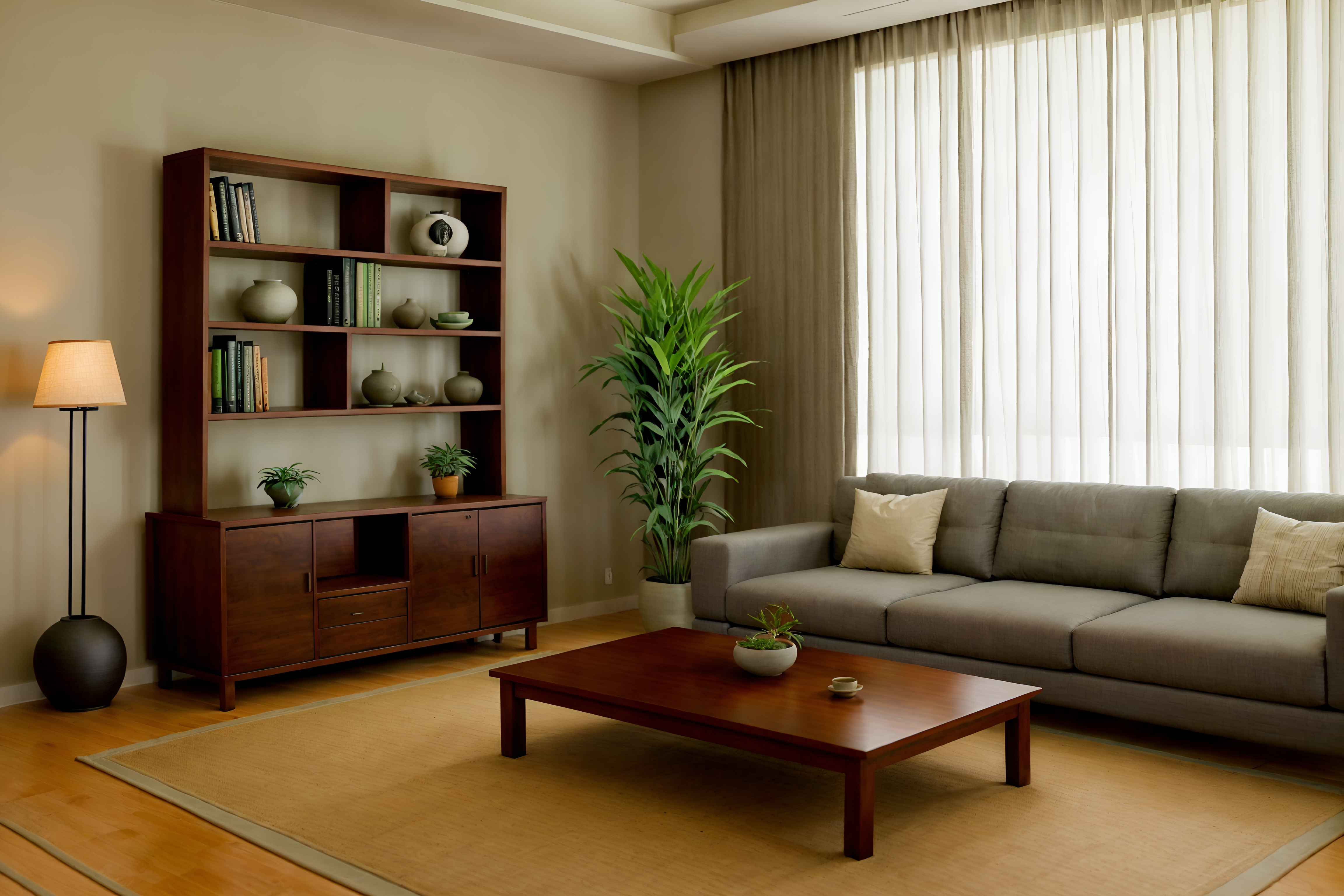zen living roomsinterior decorate this living room with zen style. . . with occasional tables and electric lamps and plant and chairs and sofa and coffee tables and bookshelves and televisions. . with clean lines and asian interior and natural textures and simple furniture and japanese minimalist interior and clutter free and calm and neutral colors and japanese minimalist interior. . .