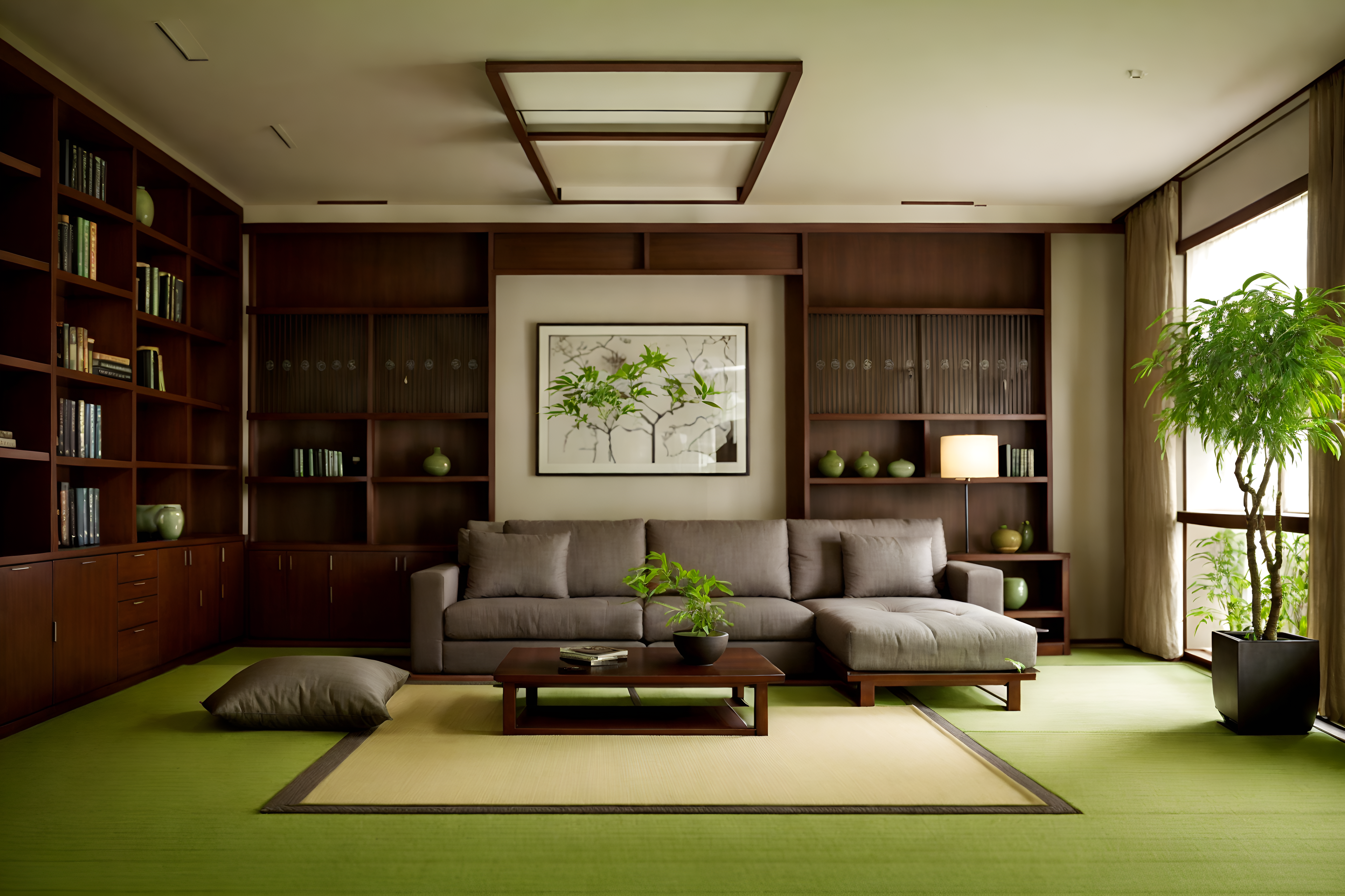 photo from pinterest of zen-style interior designed (living room interior) with furniture and bookshelves and occasional tables and coffee tables and sofa and electric lamps and plant and televisions. . with asian interior and calm and neutral colors and asian zen interior and serenity and harmony and natural textures and clean lines and japanese minimalist interior and simplicity. . cinematic photo, highly detailed, cinematic lighting, ultra-detailed, ultrarealistic, photorealism, 8k. trending on pinterest. zen interior design style. masterpiece, cinematic light, ultrarealistic+, photorealistic+, 8k, raw photo, realistic, sharp focus on eyes, (symmetrical eyes), (intact eyes), hyperrealistic, highest quality, best quality, , highly detailed, masterpiece, best quality, extremely detailed 8k wallpaper, masterpiece, best quality, ultra-detailed, best shadow, detailed background, detailed face, detailed eyes, high contrast, best illumination, detailed face, dulux, caustic, dynamic angle, detailed glow. dramatic lighting. highly detailed, insanely detailed hair, symmetrical, intricate details, professionally retouched, 8k high definition. strong bokeh. award winning photo.