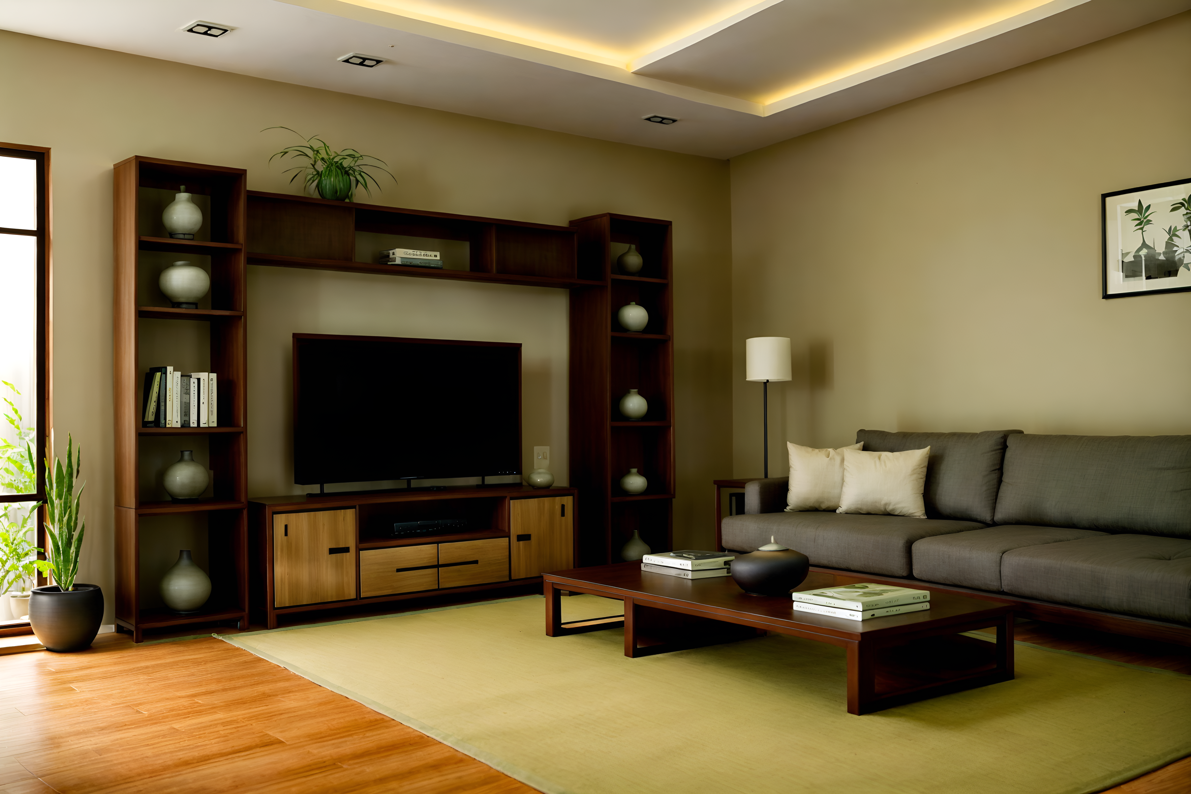 photo from pinterest of zen-style interior designed (living room interior) with furniture and bookshelves and occasional tables and coffee tables and sofa and electric lamps and plant and televisions. . with asian interior and calm and neutral colors and asian zen interior and serenity and harmony and natural textures and clean lines and japanese minimalist interior and simplicity. . cinematic photo, highly detailed, cinematic lighting, ultra-detailed, ultrarealistic, photorealism, 8k. trending on pinterest. zen interior design style. masterpiece, cinematic light, ultrarealistic+, photorealistic+, 8k, raw photo, realistic, sharp focus on eyes, (symmetrical eyes), (intact eyes), hyperrealistic, highest quality, best quality, , highly detailed, masterpiece, best quality, extremely detailed 8k wallpaper, masterpiece, best quality, ultra-detailed, best shadow, detailed background, detailed face, detailed eyes, high contrast, best illumination, detailed face, dulux, caustic, dynamic angle, detailed glow. dramatic lighting. highly detailed, insanely detailed hair, symmetrical, intricate details, professionally retouched, 8k high definition. strong bokeh. award winning photo.