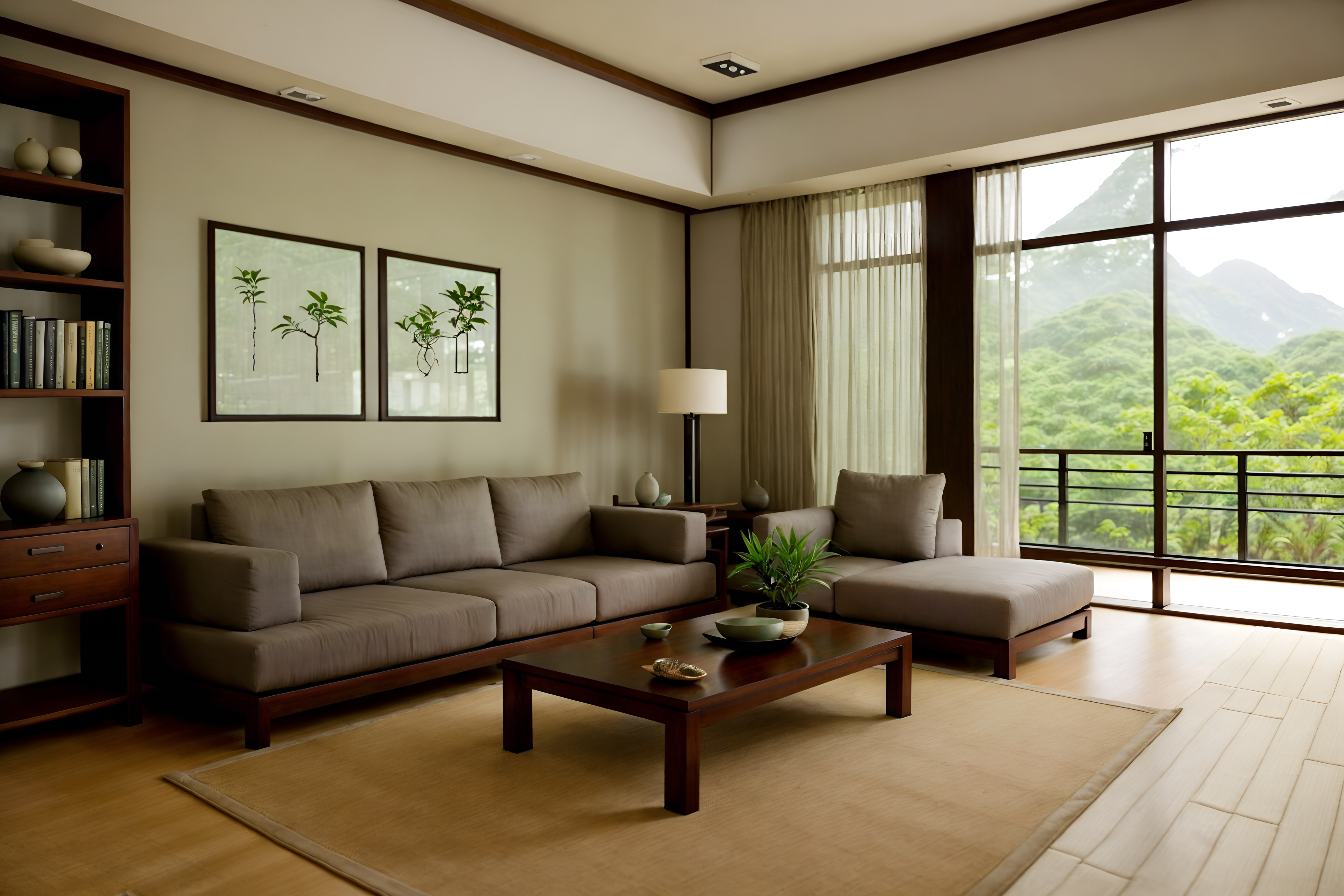 photo from pinterest of zen-style interior designed (living room interior) with furniture and bookshelves and occasional tables and coffee tables and sofa and electric lamps and plant and televisions. . with asian interior and calm and neutral colors and asian zen interior and serenity and harmony and natural textures and clean lines and japanese minimalist interior and simplicity. . cinematic photo, highly detailed, cinematic lighting, ultra-detailed, ultrarealistic, photorealism, 8k. trending on pinterest. zen interior design style. masterpiece, cinematic light, ultrarealistic+, photorealistic+, 8k, raw photo, realistic, sharp focus on eyes, (symmetrical eyes), (intact eyes), hyperrealistic, highest quality, best quality, , highly detailed, masterpiece, best quality, extremely detailed 8k wallpaper, masterpiece, best quality, ultra-detailed, best shadow, detailed background, detailed face, detailed eyes, high contrast, best illumination, detailed face, dulux, caustic, dynamic angle, detailed glow. dramatic lighting. highly detailed, insanely detailed hair, symmetrical, intricate details, professionally retouched, 8k high definition. strong bokeh. award winning photo.