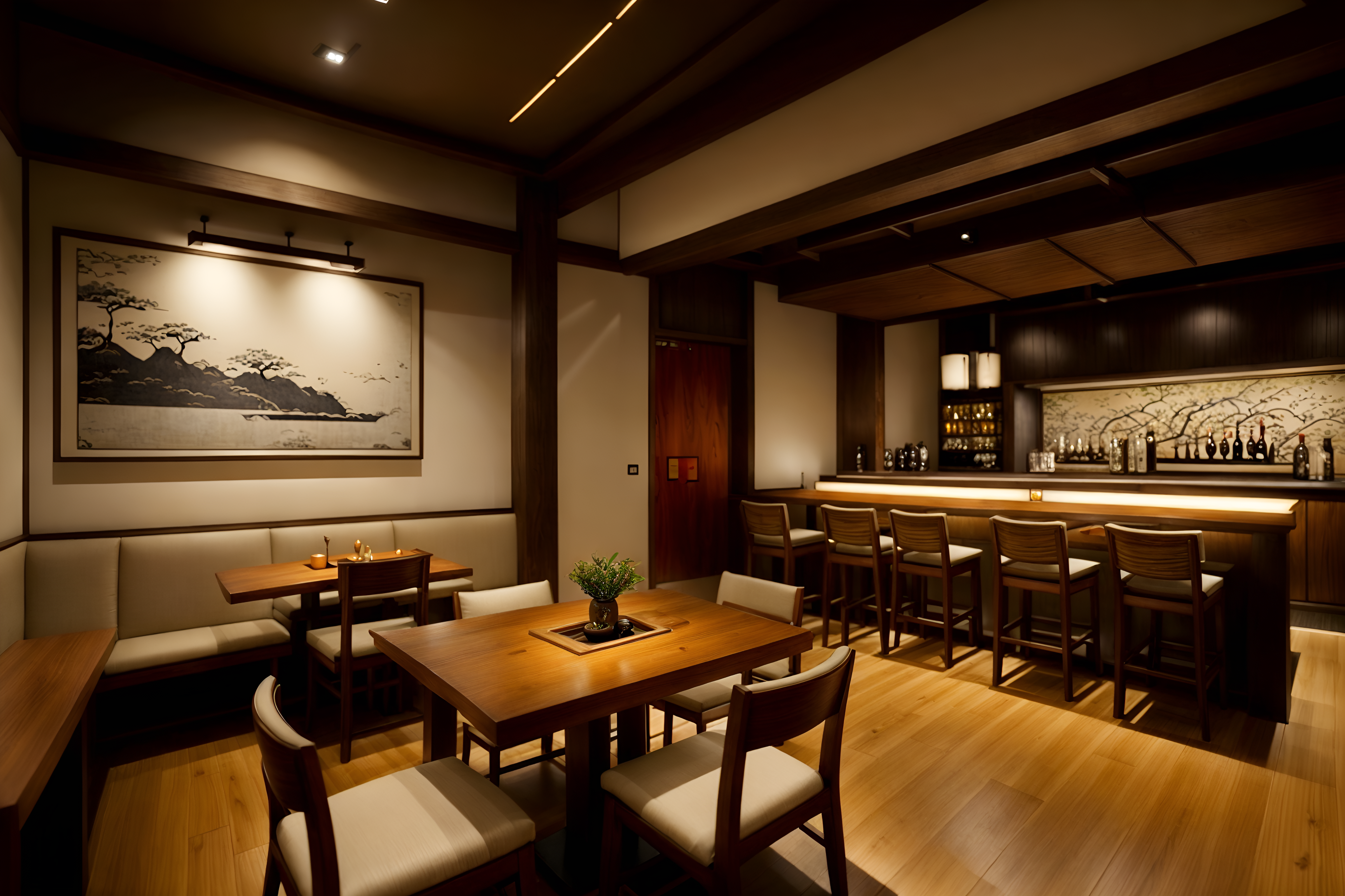 photo from pinterest of zen-style interior designed (restaurant interior) with restaurant decor and restaurant bar and restaurant chairs and restaurant dining tables and restaurant decor. . with japanese interior and asian zen interior and clean lines and calm and neutral colors and simplicity and serenity and harmony and mimimalist and clutter free. . cinematic photo, highly detailed, cinematic lighting, ultra-detailed, ultrarealistic, photorealism, 8k. trending on pinterest. zen interior design style. masterpiece, cinematic light, ultrarealistic+, photorealistic+, 8k, raw photo, realistic, sharp focus on eyes, (symmetrical eyes), (intact eyes), hyperrealistic, highest quality, best quality, , highly detailed, masterpiece, best quality, extremely detailed 8k wallpaper, masterpiece, best quality, ultra-detailed, best shadow, detailed background, detailed face, detailed eyes, high contrast, best illumination, detailed face, dulux, caustic, dynamic angle, detailed glow. dramatic lighting. highly detailed, insanely detailed hair, symmetrical, intricate details, professionally retouched, 8k high definition. strong bokeh. award winning photo.