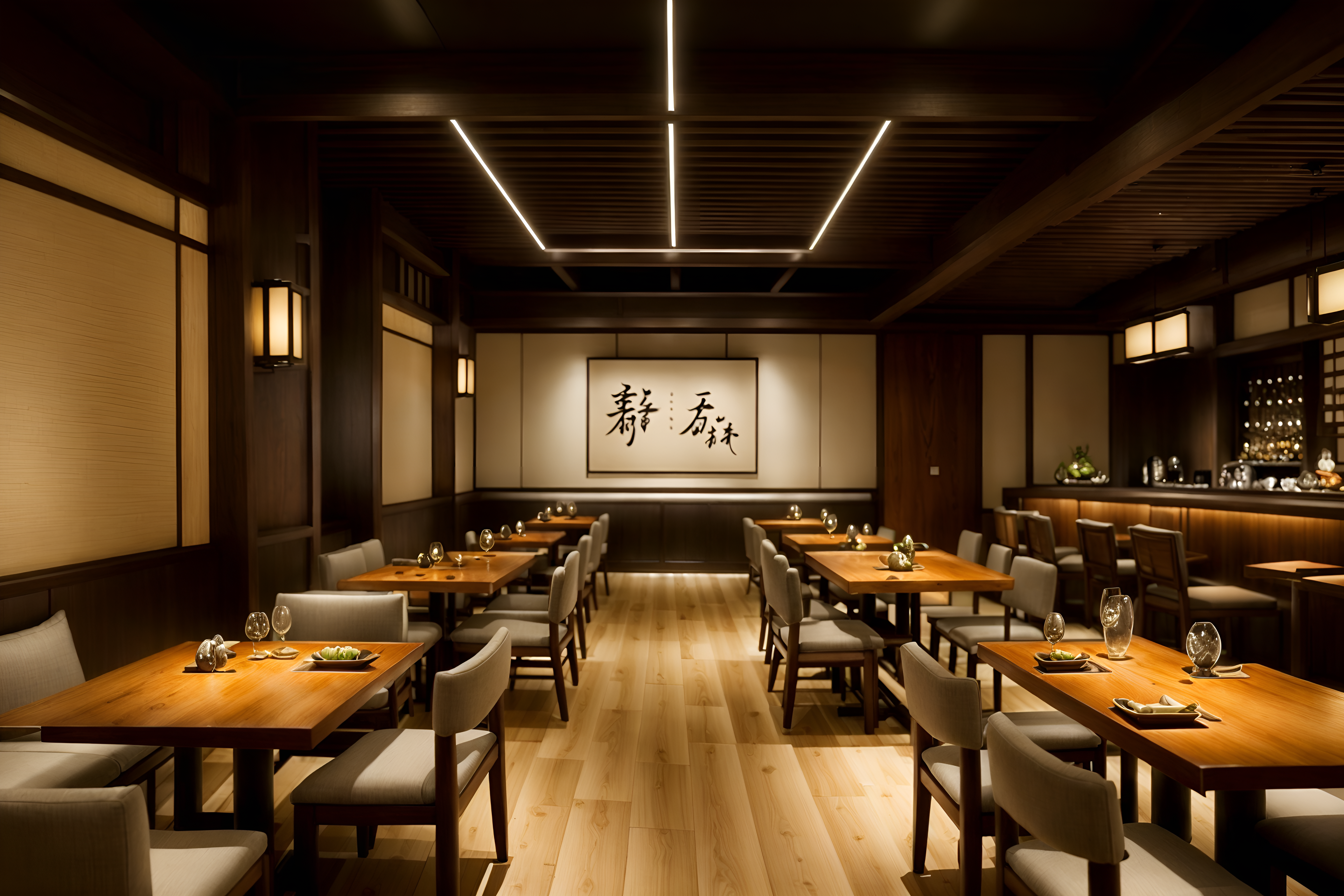 photo from pinterest of zen-style interior designed (restaurant interior) with restaurant decor and restaurant bar and restaurant chairs and restaurant dining tables and restaurant decor. . with japanese interior and asian zen interior and clean lines and calm and neutral colors and simplicity and serenity and harmony and mimimalist and clutter free. . cinematic photo, highly detailed, cinematic lighting, ultra-detailed, ultrarealistic, photorealism, 8k. trending on pinterest. zen interior design style. masterpiece, cinematic light, ultrarealistic+, photorealistic+, 8k, raw photo, realistic, sharp focus on eyes, (symmetrical eyes), (intact eyes), hyperrealistic, highest quality, best quality, , highly detailed, masterpiece, best quality, extremely detailed 8k wallpaper, masterpiece, best quality, ultra-detailed, best shadow, detailed background, detailed face, detailed eyes, high contrast, best illumination, detailed face, dulux, caustic, dynamic angle, detailed glow. dramatic lighting. highly detailed, insanely detailed hair, symmetrical, intricate details, professionally retouched, 8k high definition. strong bokeh. award winning photo.