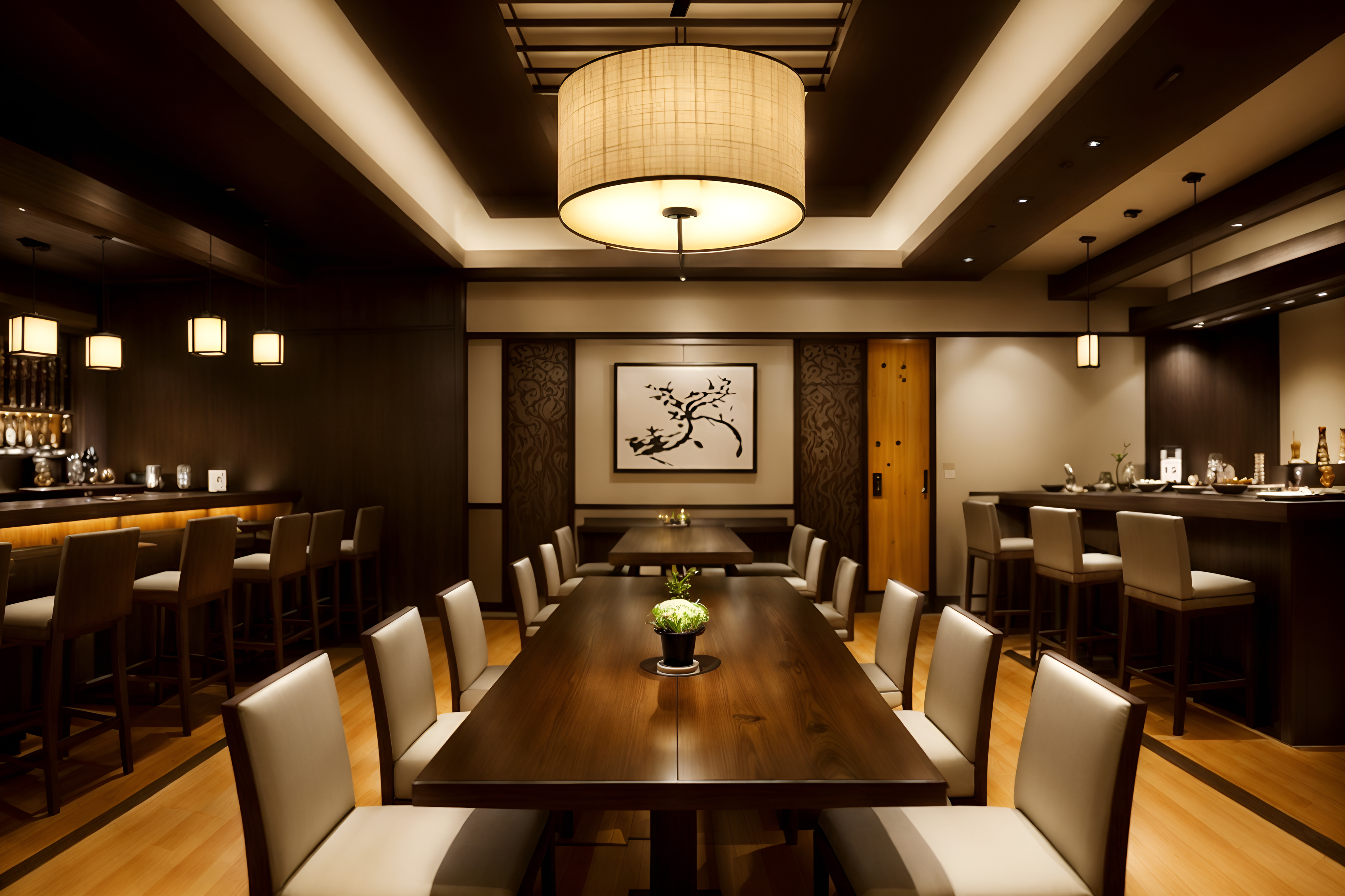 photo from pinterest of zen-style interior designed (restaurant interior) with restaurant decor and restaurant bar and restaurant chairs and restaurant dining tables and restaurant decor. . with japanese interior and asian zen interior and clean lines and calm and neutral colors and simplicity and serenity and harmony and mimimalist and clutter free. . cinematic photo, highly detailed, cinematic lighting, ultra-detailed, ultrarealistic, photorealism, 8k. trending on pinterest. zen interior design style. masterpiece, cinematic light, ultrarealistic+, photorealistic+, 8k, raw photo, realistic, sharp focus on eyes, (symmetrical eyes), (intact eyes), hyperrealistic, highest quality, best quality, , highly detailed, masterpiece, best quality, extremely detailed 8k wallpaper, masterpiece, best quality, ultra-detailed, best shadow, detailed background, detailed face, detailed eyes, high contrast, best illumination, detailed face, dulux, caustic, dynamic angle, detailed glow. dramatic lighting. highly detailed, insanely detailed hair, symmetrical, intricate details, professionally retouched, 8k high definition. strong bokeh. award winning photo.