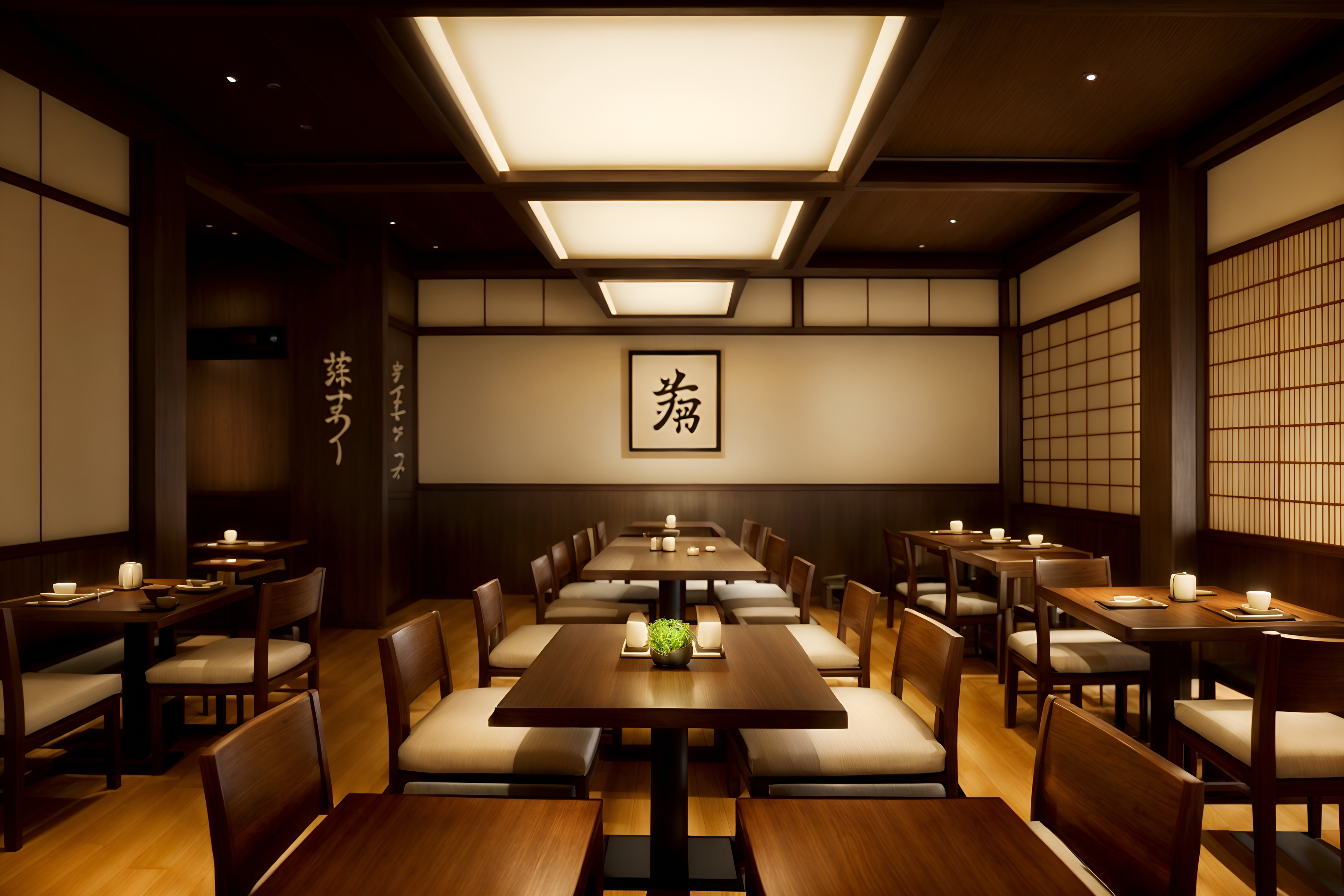 photo from pinterest of zen-style interior designed (restaurant interior) with restaurant decor and restaurant bar and restaurant chairs and restaurant dining tables and restaurant decor. . with japanese interior and asian zen interior and clean lines and calm and neutral colors and simplicity and serenity and harmony and mimimalist and clutter free. . cinematic photo, highly detailed, cinematic lighting, ultra-detailed, ultrarealistic, photorealism, 8k. trending on pinterest. zen interior design style. masterpiece, cinematic light, ultrarealistic+, photorealistic+, 8k, raw photo, realistic, sharp focus on eyes, (symmetrical eyes), (intact eyes), hyperrealistic, highest quality, best quality, , highly detailed, masterpiece, best quality, extremely detailed 8k wallpaper, masterpiece, best quality, ultra-detailed, best shadow, detailed background, detailed face, detailed eyes, high contrast, best illumination, detailed face, dulux, caustic, dynamic angle, detailed glow. dramatic lighting. highly detailed, insanely detailed hair, symmetrical, intricate details, professionally retouched, 8k high definition. strong bokeh. award winning photo.