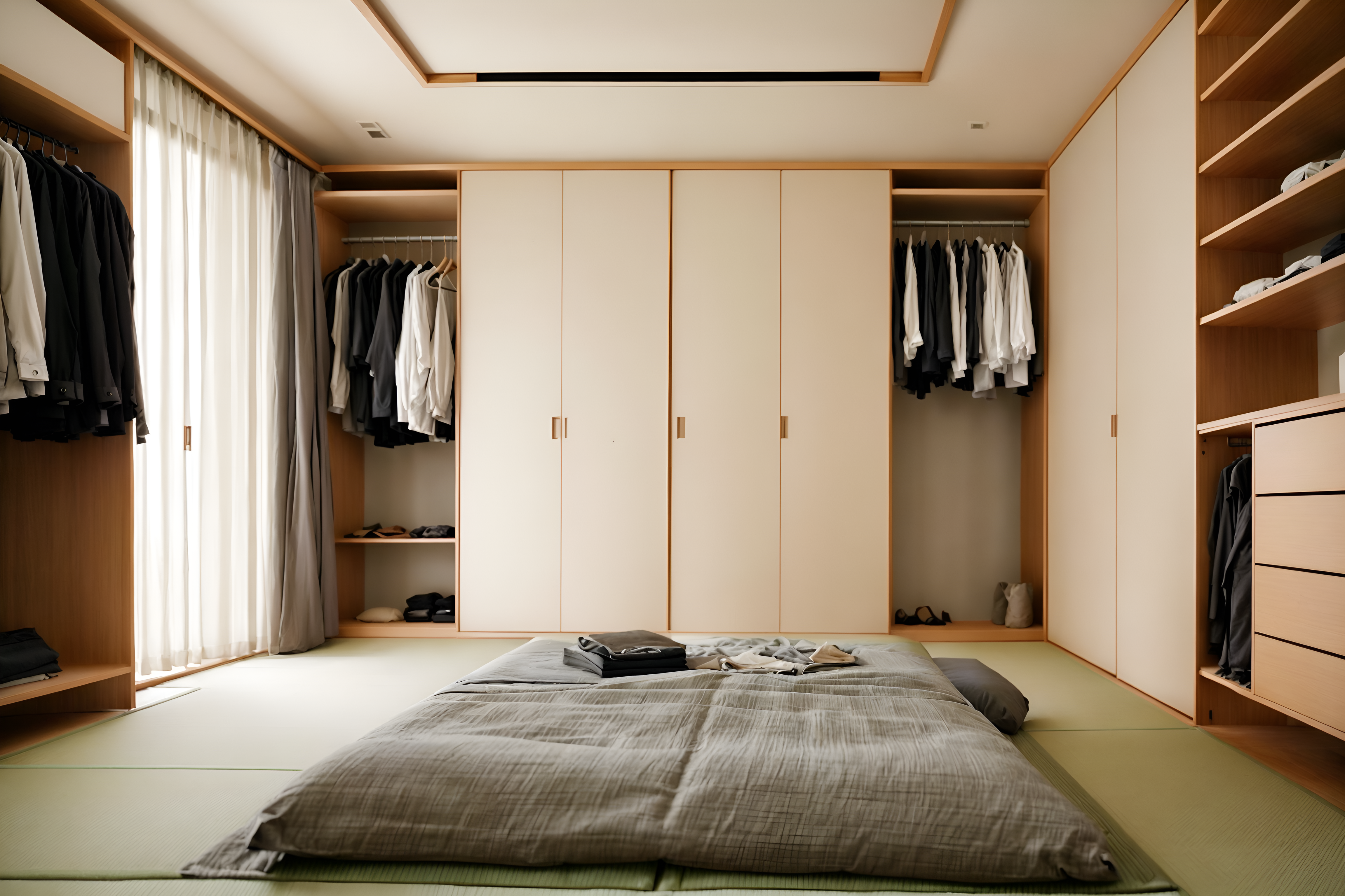 photo from pinterest of zen-style interior designed (walk in closet interior) . with calm and neutral colors and japanese minimalist interior and simple furniture and japanese interior and clutter free and asian zen interior and serenity and harmony and japanese minimalist interior. . cinematic photo, highly detailed, cinematic lighting, ultra-detailed, ultrarealistic, photorealism, 8k. trending on pinterest. zen interior design style. masterpiece, cinematic light, ultrarealistic+, photorealistic+, 8k, raw photo, realistic, sharp focus on eyes, (symmetrical eyes), (intact eyes), hyperrealistic, highest quality, best quality, , highly detailed, masterpiece, best quality, extremely detailed 8k wallpaper, masterpiece, best quality, ultra-detailed, best shadow, detailed background, detailed face, detailed eyes, high contrast, best illumination, detailed face, dulux, caustic, dynamic angle, detailed glow. dramatic lighting. highly detailed, insanely detailed hair, symmetrical, intricate details, professionally retouched, 8k high definition. strong bokeh. award winning photo.