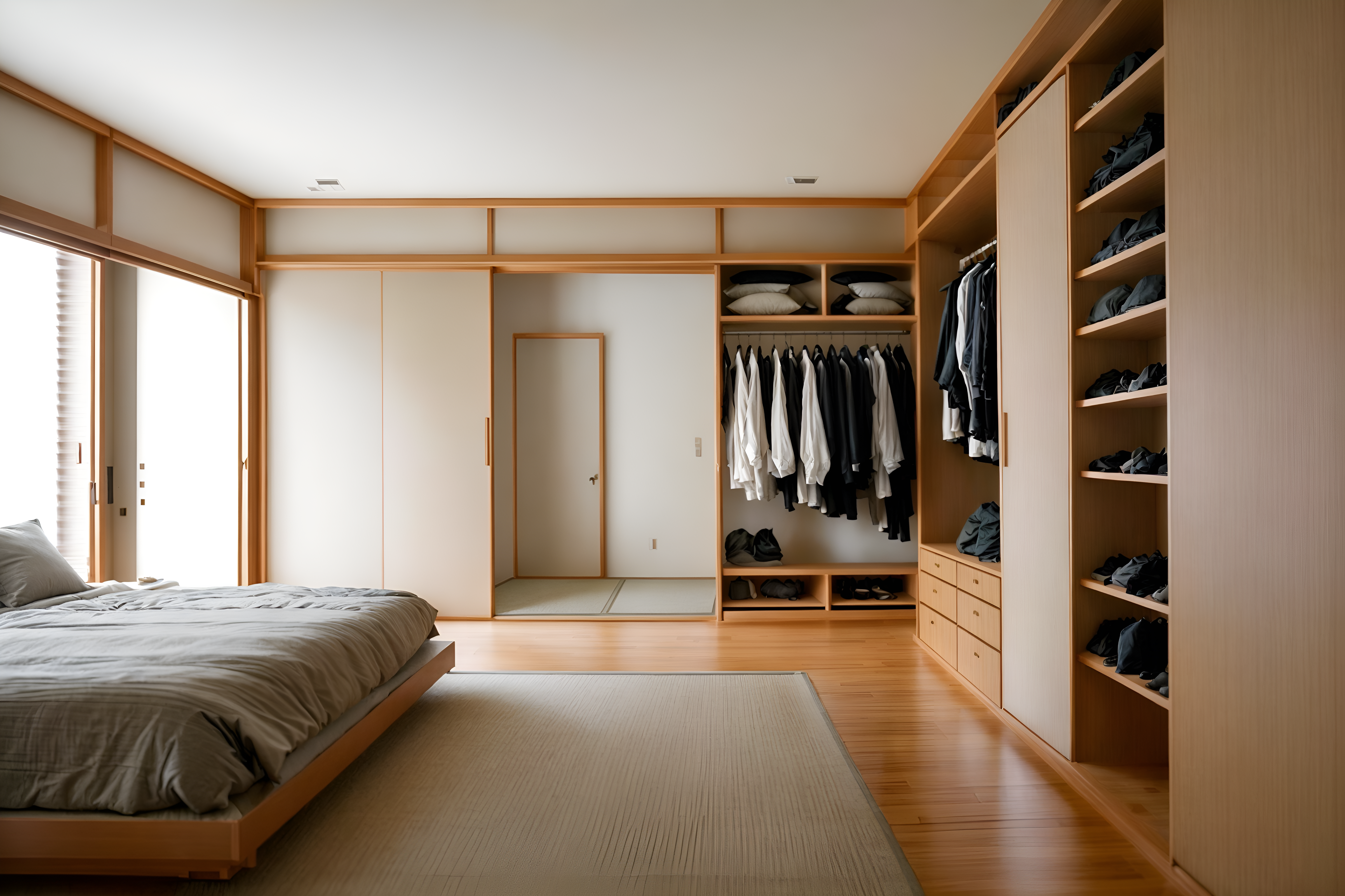 photo from pinterest of zen-style interior designed (walk in closet interior) . with calm and neutral colors and japanese minimalist interior and simple furniture and japanese interior and clutter free and asian zen interior and serenity and harmony and japanese minimalist interior. . cinematic photo, highly detailed, cinematic lighting, ultra-detailed, ultrarealistic, photorealism, 8k. trending on pinterest. zen interior design style. masterpiece, cinematic light, ultrarealistic+, photorealistic+, 8k, raw photo, realistic, sharp focus on eyes, (symmetrical eyes), (intact eyes), hyperrealistic, highest quality, best quality, , highly detailed, masterpiece, best quality, extremely detailed 8k wallpaper, masterpiece, best quality, ultra-detailed, best shadow, detailed background, detailed face, detailed eyes, high contrast, best illumination, detailed face, dulux, caustic, dynamic angle, detailed glow. dramatic lighting. highly detailed, insanely detailed hair, symmetrical, intricate details, professionally retouched, 8k high definition. strong bokeh. award winning photo.