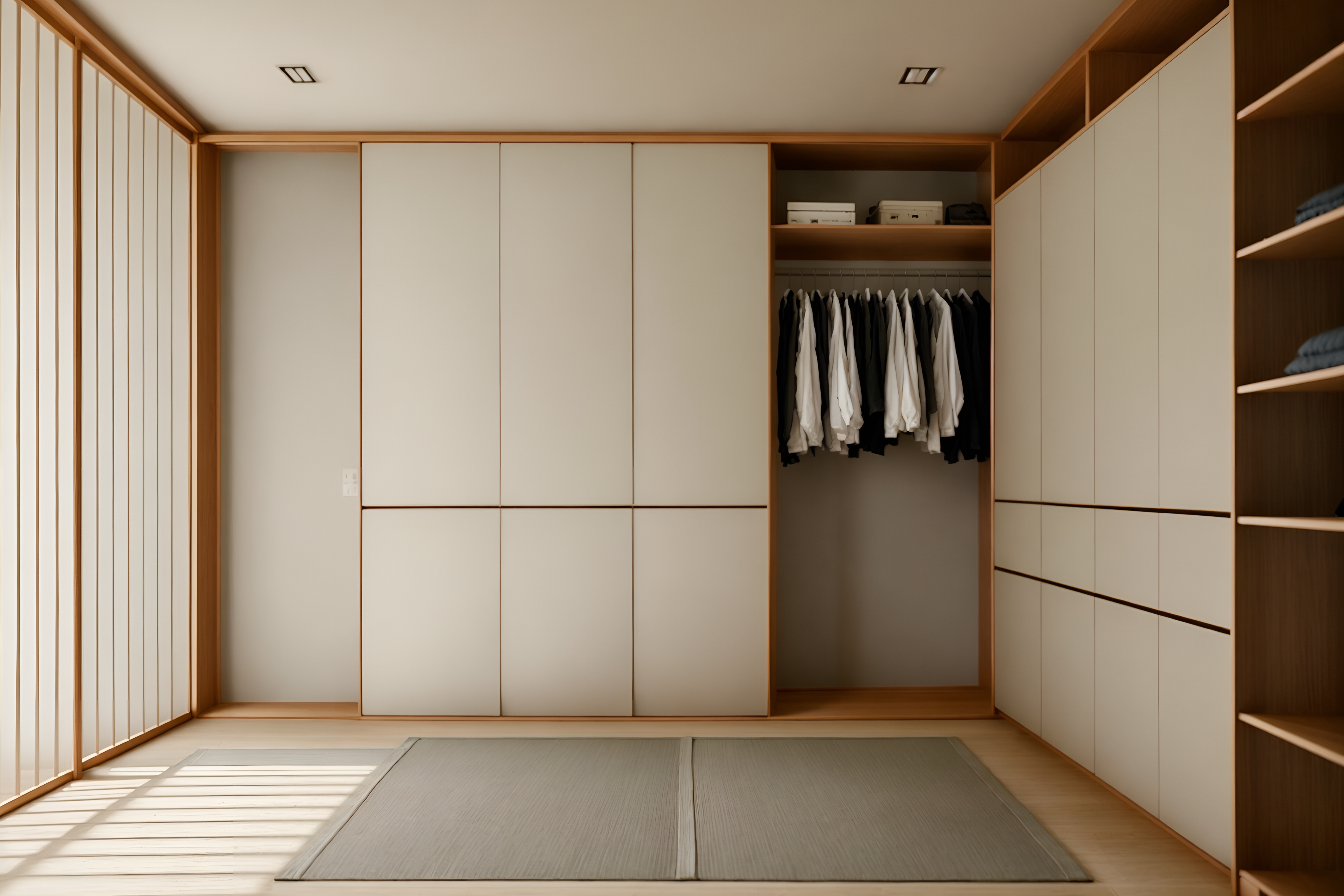 photo from pinterest of zen-style interior designed (walk in closet interior) . with calm and neutral colors and japanese minimalist interior and simple furniture and japanese interior and clutter free and asian zen interior and serenity and harmony and japanese minimalist interior. . cinematic photo, highly detailed, cinematic lighting, ultra-detailed, ultrarealistic, photorealism, 8k. trending on pinterest. zen interior design style. masterpiece, cinematic light, ultrarealistic+, photorealistic+, 8k, raw photo, realistic, sharp focus on eyes, (symmetrical eyes), (intact eyes), hyperrealistic, highest quality, best quality, , highly detailed, masterpiece, best quality, extremely detailed 8k wallpaper, masterpiece, best quality, ultra-detailed, best shadow, detailed background, detailed face, detailed eyes, high contrast, best illumination, detailed face, dulux, caustic, dynamic angle, detailed glow. dramatic lighting. highly detailed, insanely detailed hair, symmetrical, intricate details, professionally retouched, 8k high definition. strong bokeh. award winning photo.